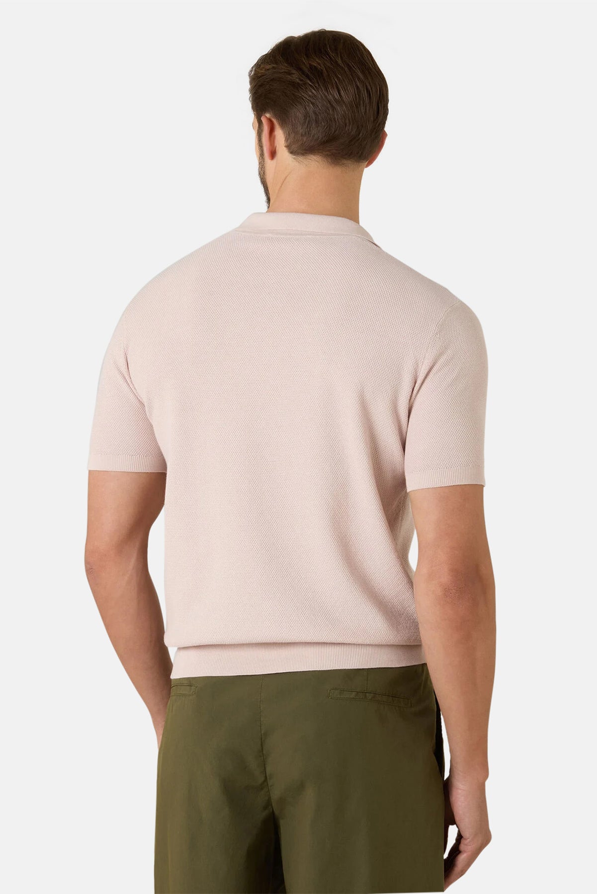 Crafted from garment-dyed cotton piqué, offers a soft, breathable texture with rich, tonal depth. The classic piqué weave provides subtle structure, while the garment dyeing enhances its relaxed, lived-in character. Finished with ribbed cuffs and hem.