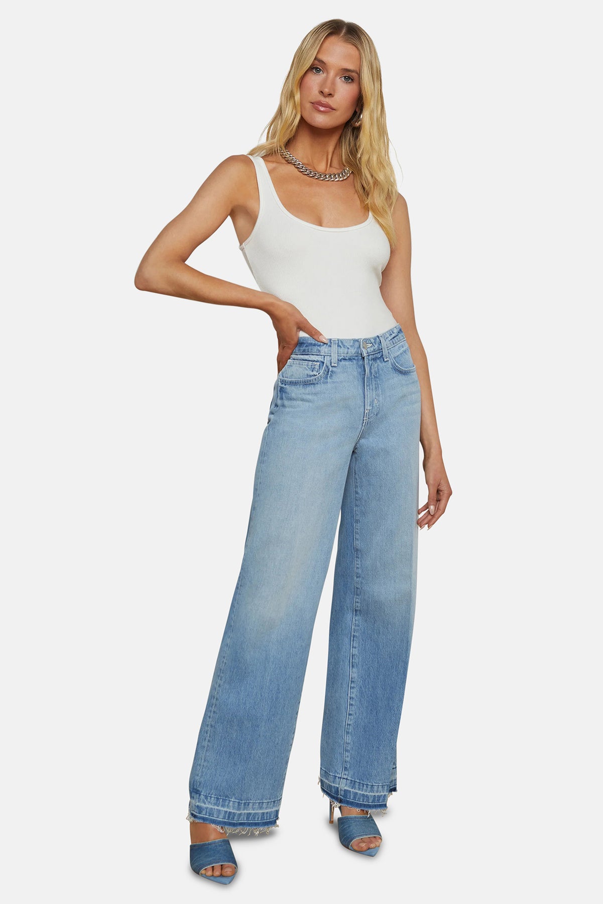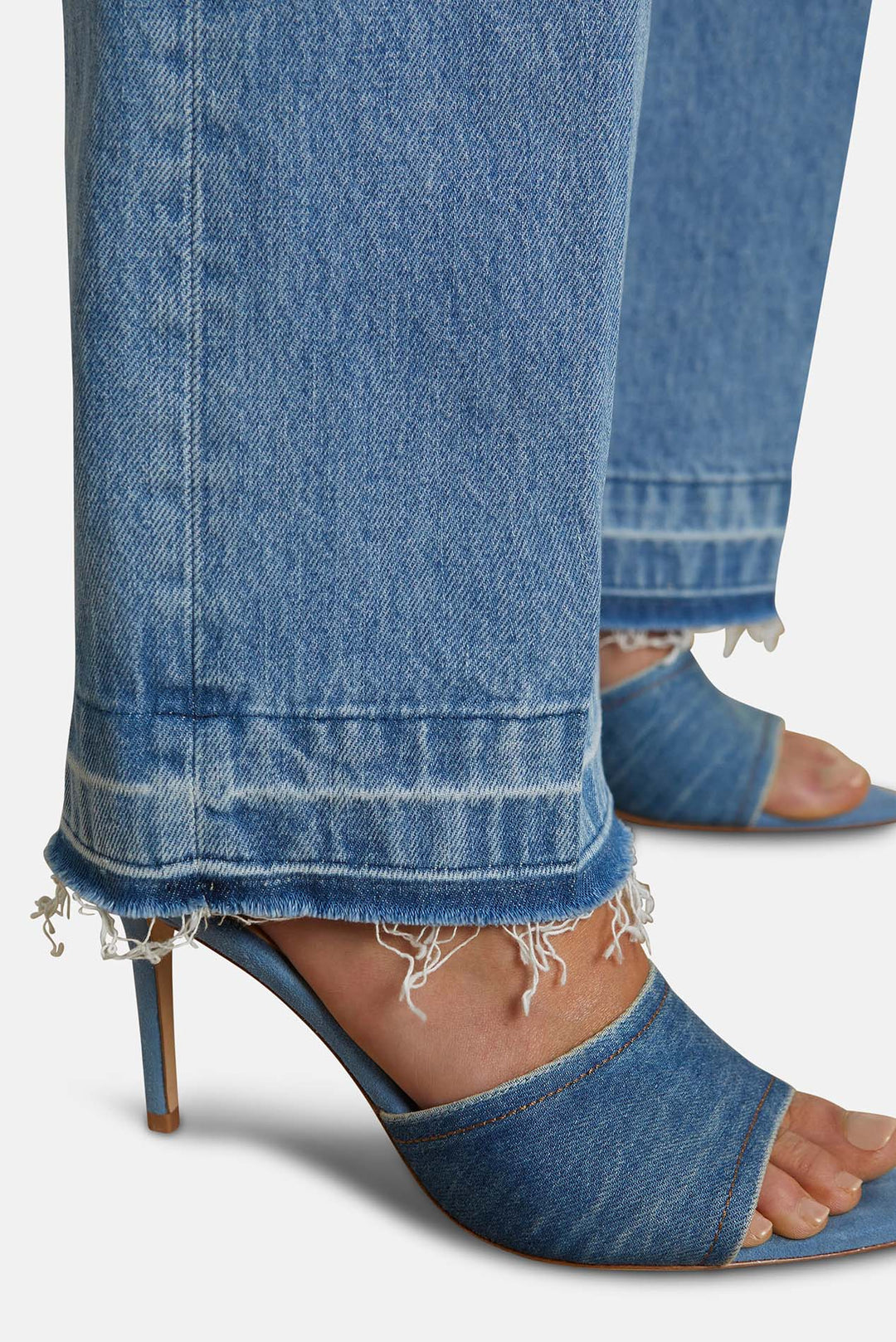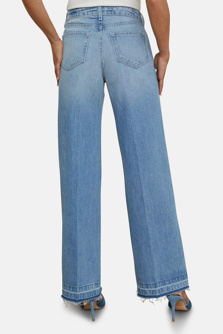 Fitted and flattering through the hips, the Scottie is our classic wide-leg jean. Now in an aged wash with a released hem.