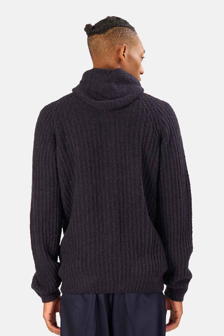 Chunky Rib Zip Hoodie Navy