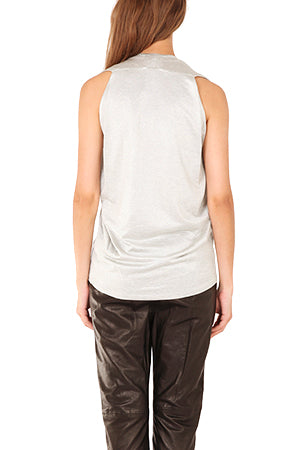 A day to night look with a touch of something special. Extra draping on the shoulders and sheen finish make this top a total power play.
