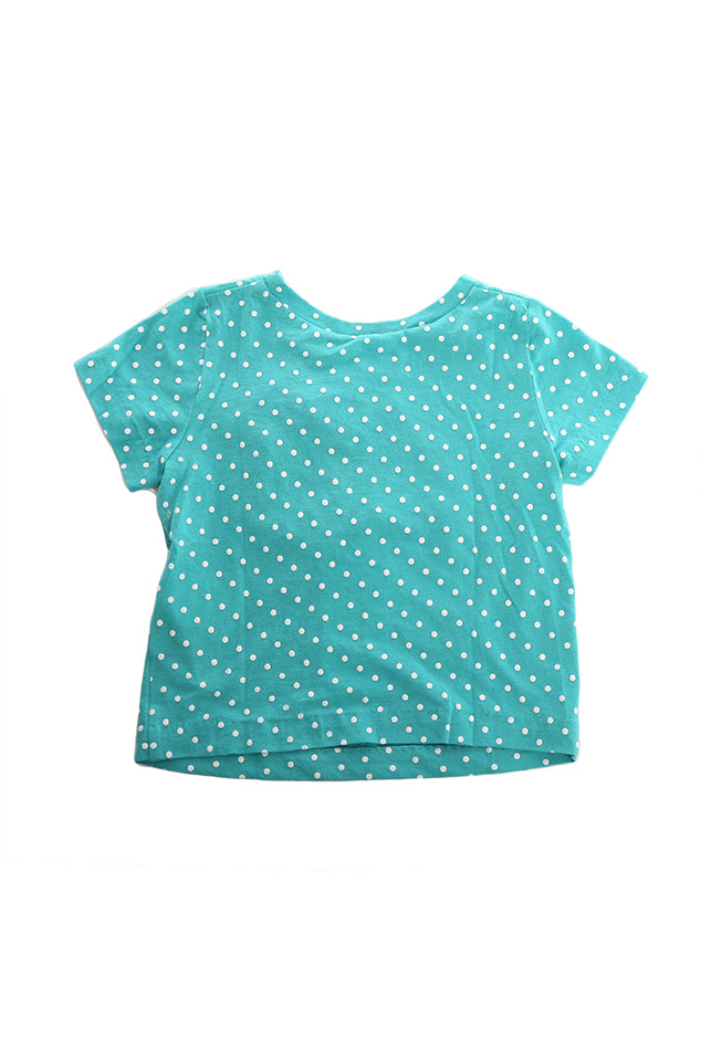 Extremely soft short sleeve bow tee with repeat raised polka dot print. Fits true to size.