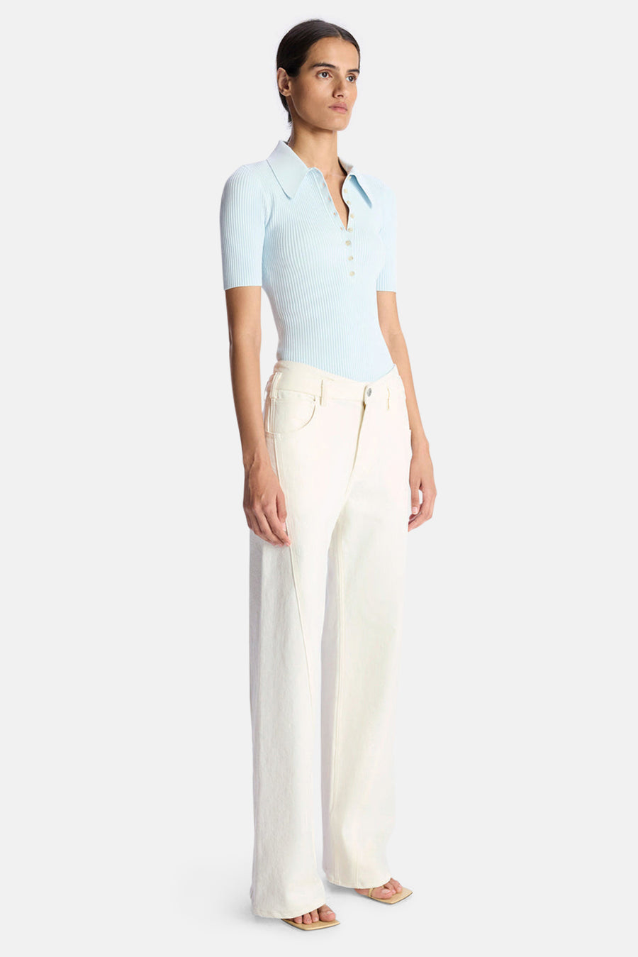 - The Travis Jean is crafted from an ecru shade of denim with a hint of stretch