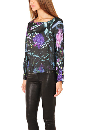 Elegant long sleeve top with a beautiful floral print. Wear with black leather skinnies for a completed look.