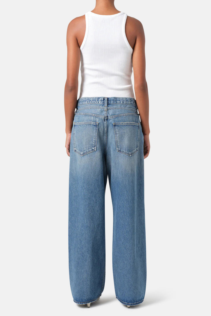 The Emmi features a roomy yet flattering silhouette finished with a thin denim belt to pull the waist in. The full-length inseam into the wide leg makes for the perfect easy and go look.