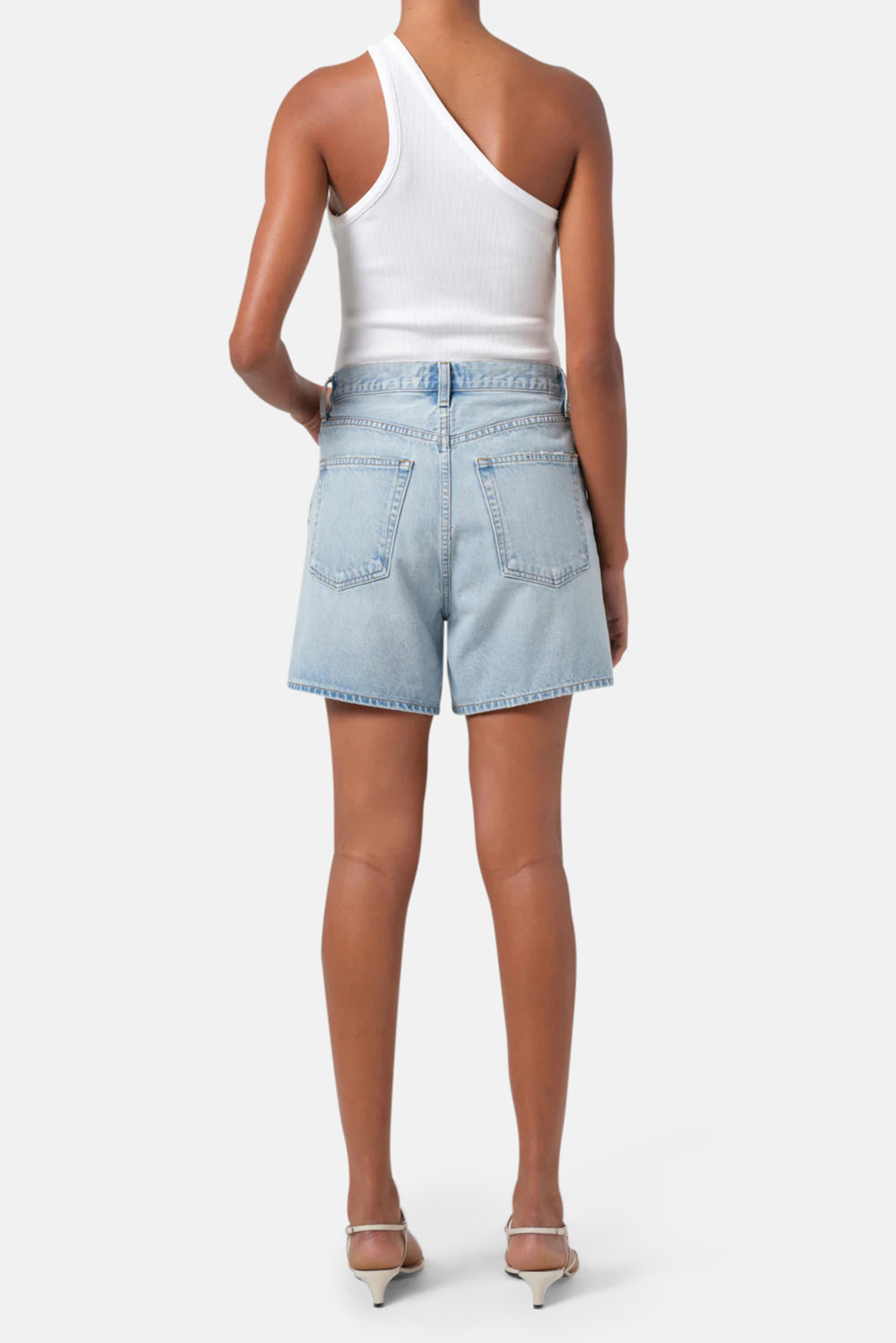 The V-Waist Short reimagines the classic silhouette with a sharp, pitched V-shaped waistband that cinches the waist and leads into a relaxed fit through the leg. The clean hem finishes the look with a crisp, tailored edge. Crafted from regenerative cotton, this piece offers a structured yet comfortable feel, perfect for an easy, elevated look. Pair with a simple tee or slouchy shirt for a minimalist, off-duty vibe.