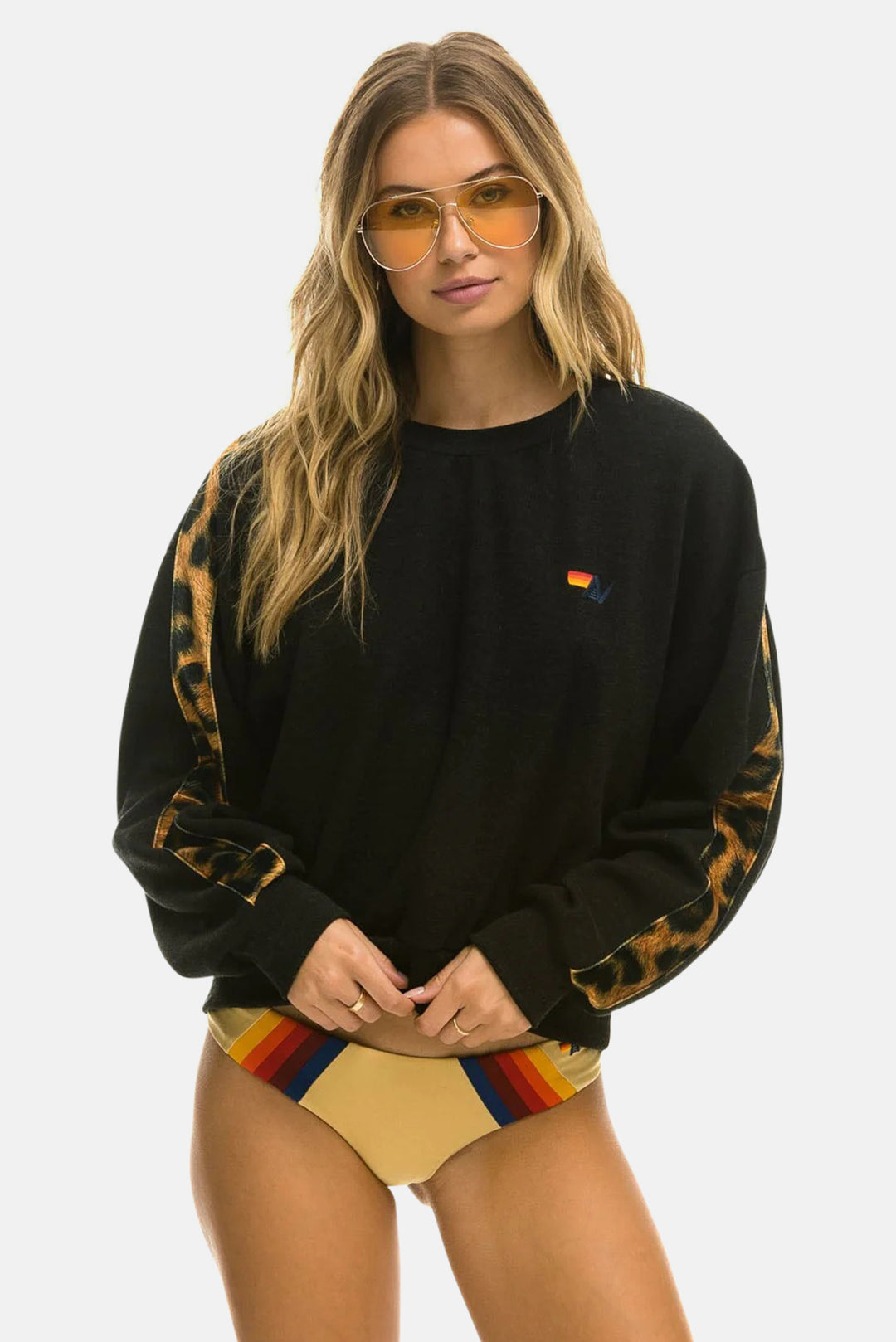 The highly anticipated Aviator Nation WILD collection is here and you don't want to miss it. Your favorite cozy sweatshirt combined with the yummy velvet cheetah stripes create a total game changer garment. Get ready to turn heads because these are truly next level. The matching sweatpants are obviously a must-have to complete this killer look.