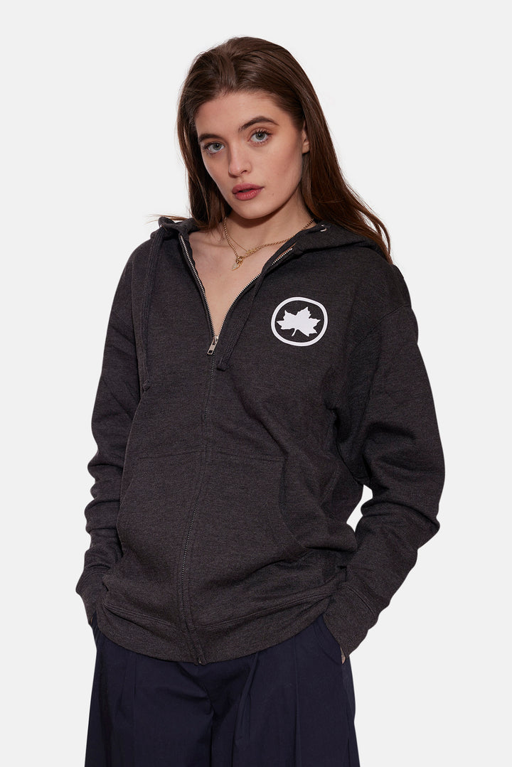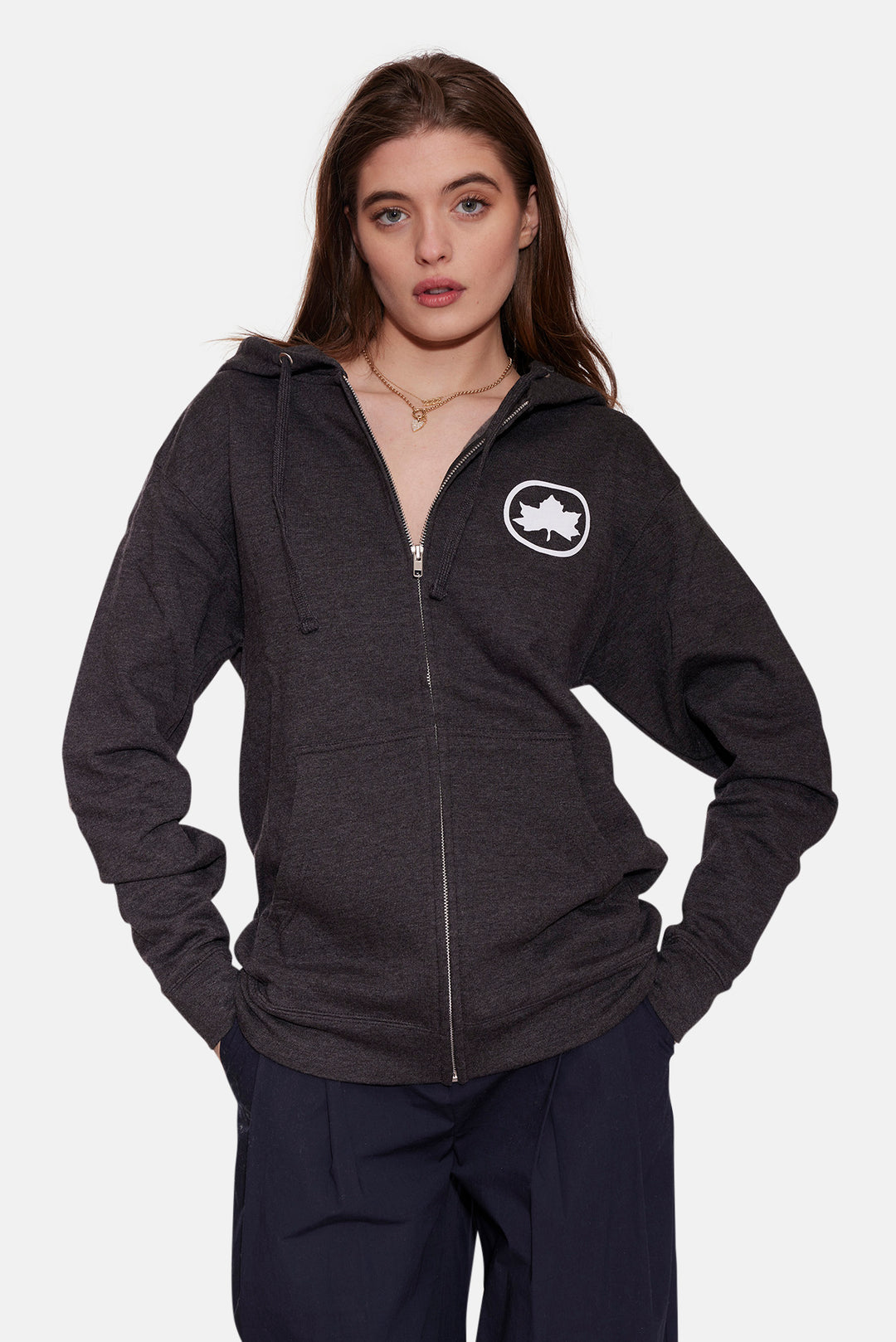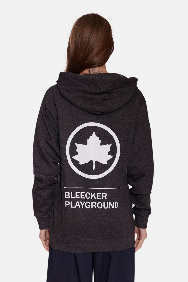 A streetwear essential with a classic edge. The Bleecker Playground Zip Hoodie in charcoal delivers the perfect mix of comfort and attitude, featuring a bold back graphic and signature maple leaf logo on the chest. Crafted from a soft, midweight fleece, it’s ideal for layering year-round.