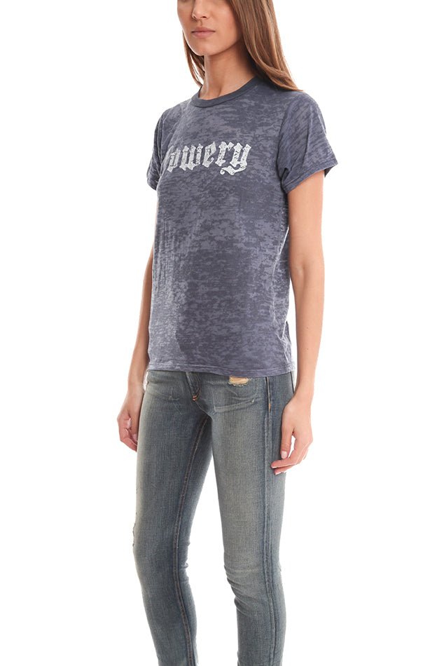 This super soft, classic boy tee in burnout cotton features our classic "Bowery" logo emblazoned on the chest. This shirt is unisex and a must for anyone in any situation.