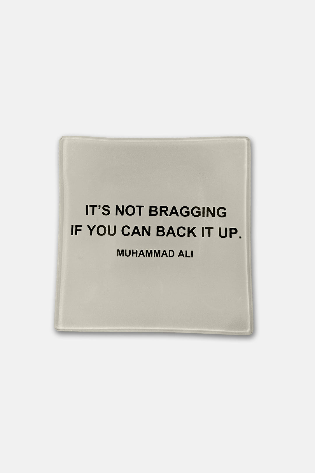 In the French tradition of decoupage, this bent-glass tray was handcrafted exclusively for Blue&Cream. Featuring fun phrases on a vintage Sage background. For Mom, Dad or your best friend it's the perfect creative gift!