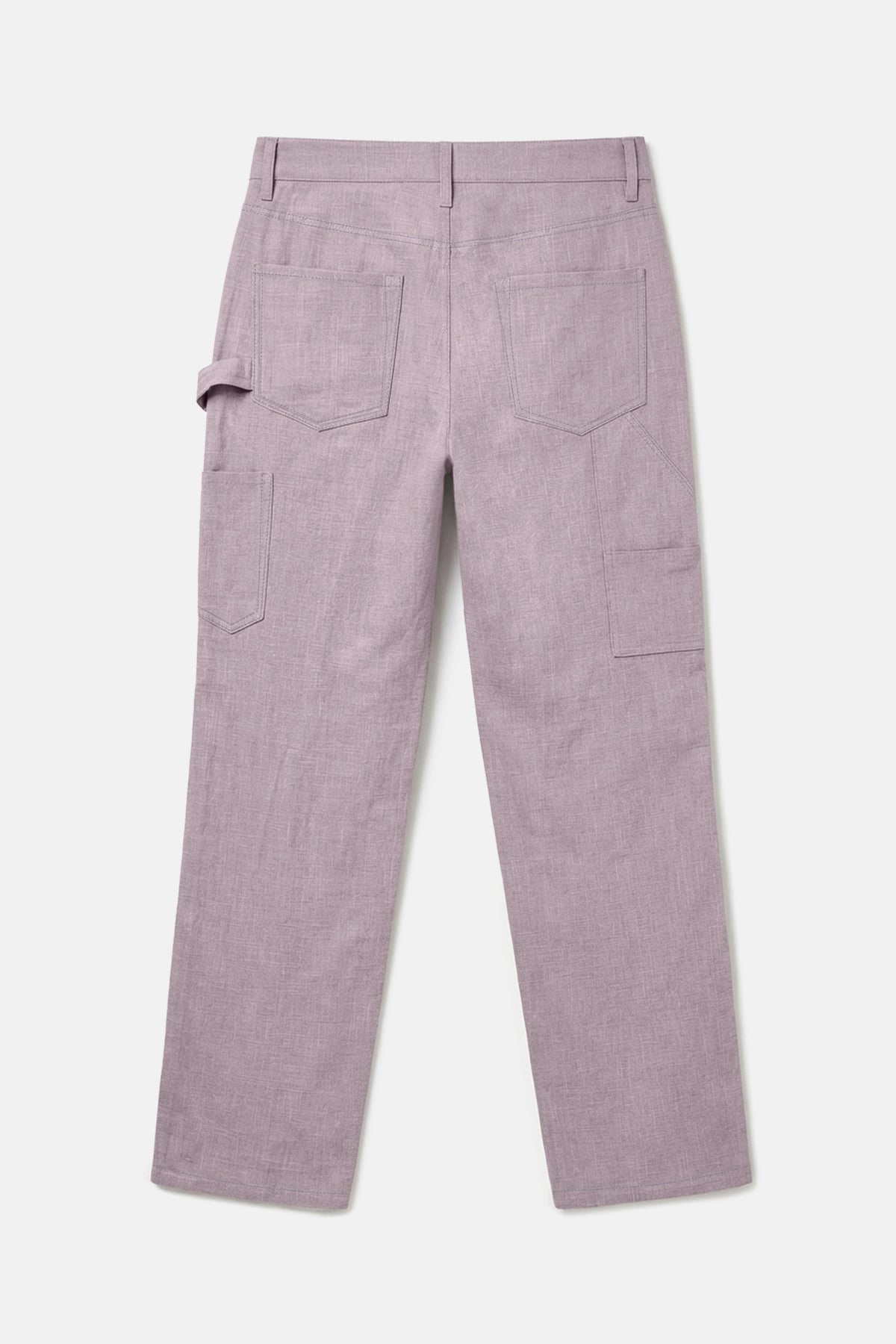 Contemporary styling, in a fabric choice you hadn't thought of before. Get the workwear look of a Carhart carpenter pant in a elevated Cotton/Linen blend that maintains its shape and form, heavy enough for all year round, not a floppy linen beach pant. Replace the Chino, wear out at nite as an alternate to jeans with a cashmere sweater or in height of summer with a tee or polo. Truly Versatile and a nod to style.