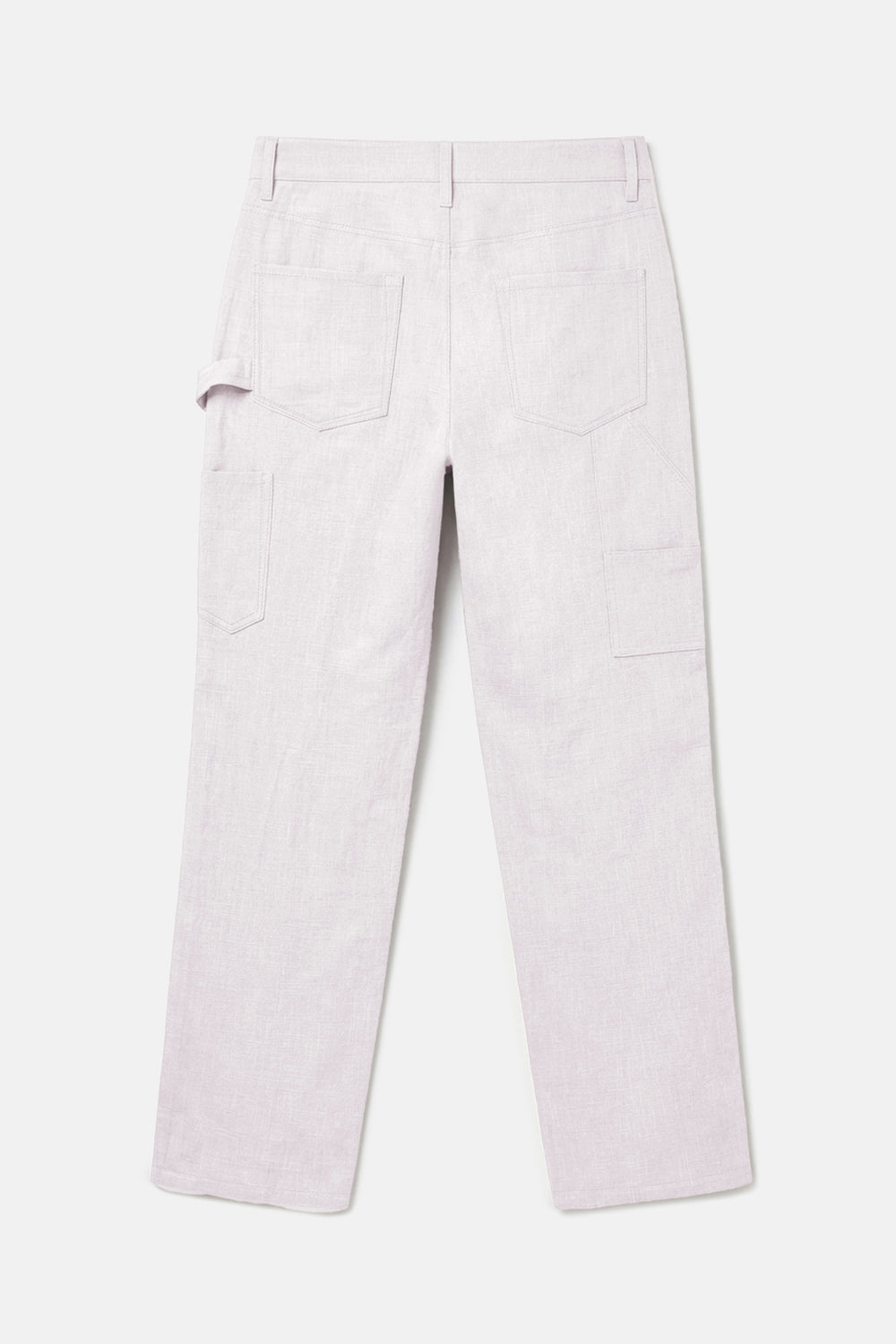 Contemporary styling, in a fabric choice you hadn't thought of before. Get the workwear look of a Carhart carpenter pant in a elevated Cotton/Linen blend that maintains its shape and form, heavy enough for all year round, not a floppy linen beach pant. Replace the Chino, wear out at nite as an alternate to jeans with a cashmere sweater or in height of summer with a tee or polo. Truly Versatile and a nod to style.