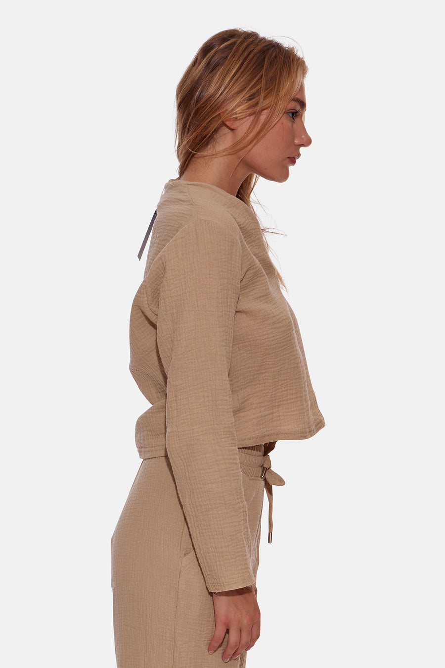 Wear the whole set for a unique Blue&Cream look or style with your favorite jean shorts. Made from 100% cotton gauze fabric this style is perfect for exotic weather. Take it to the Hamptons or on vacation it is an essential garment.