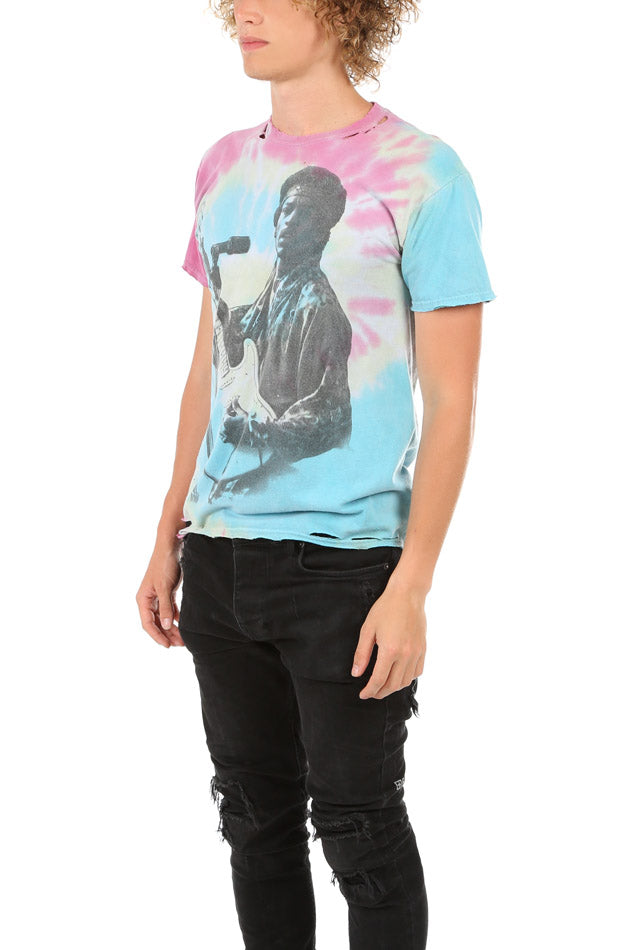 A Blue&Cream exclusive. Hand distressed to perfection this tee is super soft with a graphic of Jimi Hendrix.