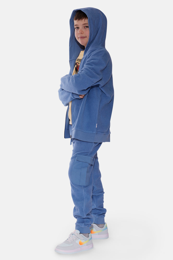 Keep kids cozy and cool in these Kids' Blue Joggers. Made from soft, plush fabric with a relaxed fit, kids can run, jump, play, or lounge all day in these joggers. Perfect for all-day comfort, they featuring an elastic waistband with adjustable drawstrings and a side cargo pocket for extra utility.