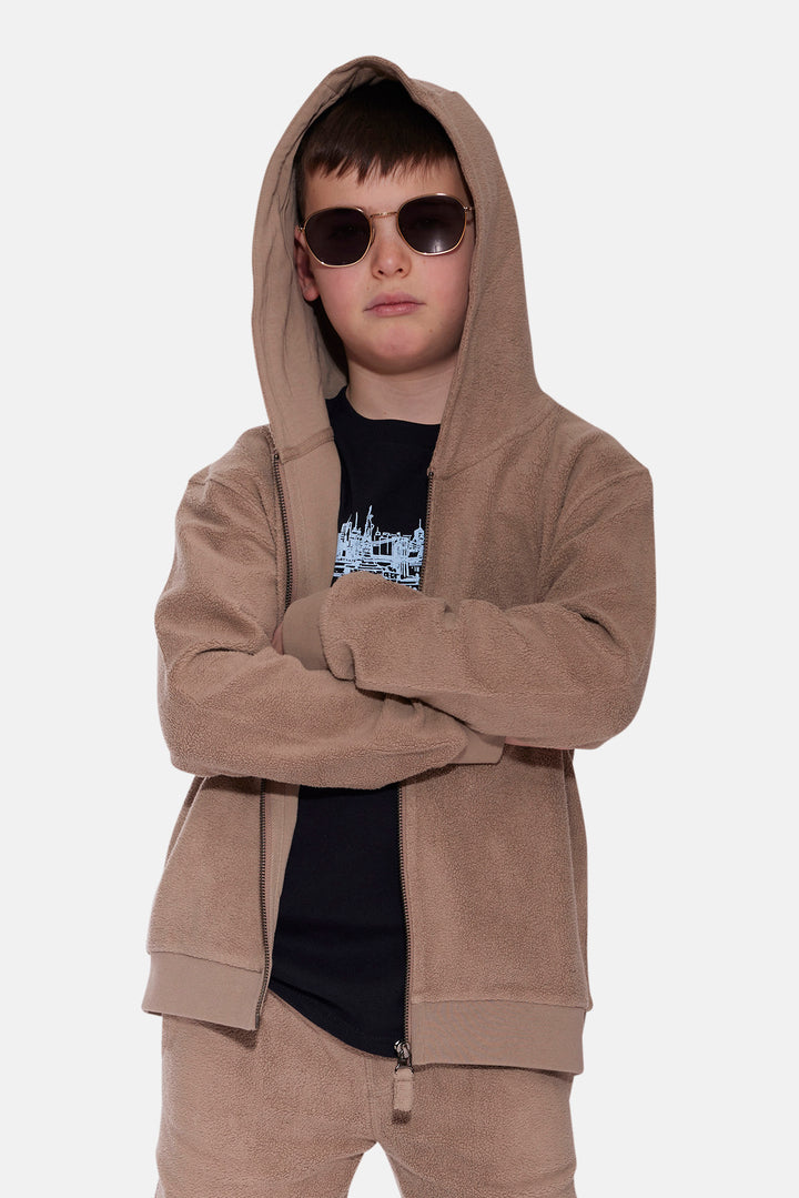 Cool, comfy, and ready for anything. This Kids' Zip Hoodie in Taupe is made from soft fleece for all-day warmth without the bulk. The relaxed fit, zip-up design, and roomy hood make it perfect for layering, while the neutral tone keeps it effortlessly stylish. Whether they’re chilling or on the move, this hoodie’s got them covered.