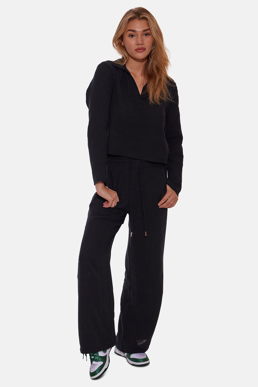 Our Wendy Gauze pant offer a relaxed silhouette with a drawstring waist band for you to adjust to your liking. Made from 100% cotton gauze fabric excellent for those summer days or take with you on vacation.