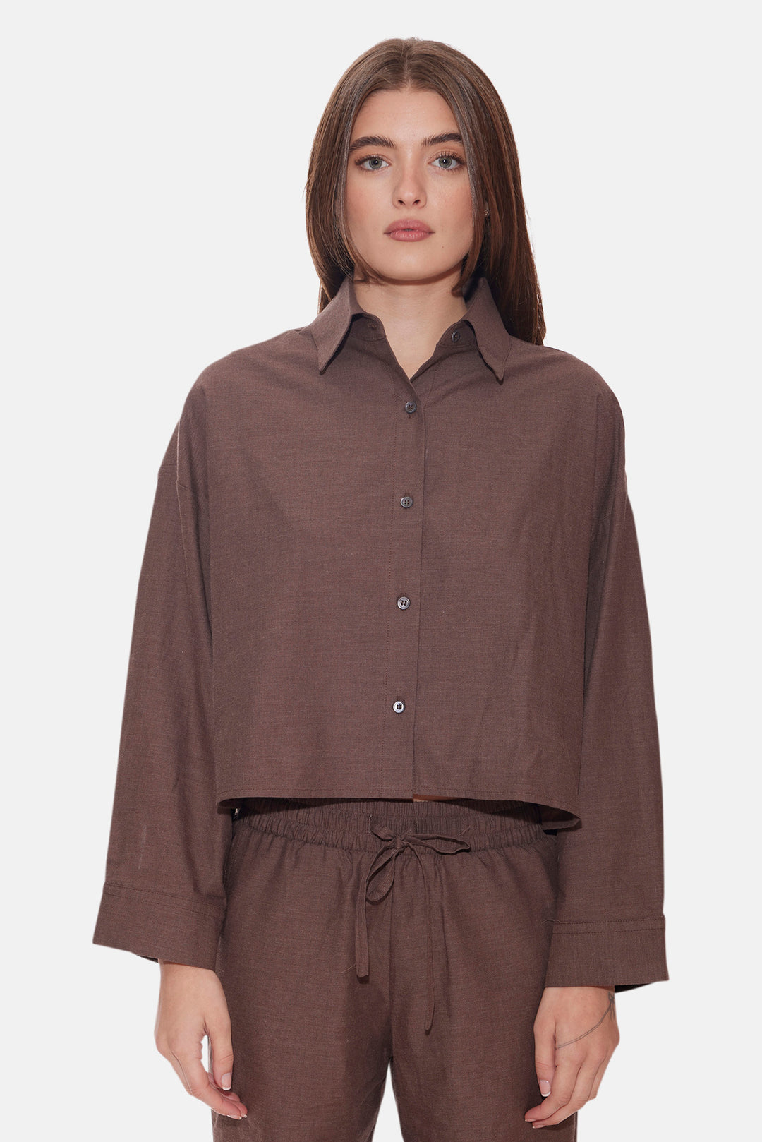Chateau Twill Crop Shirt Brown (Size)