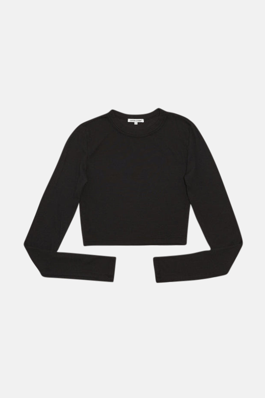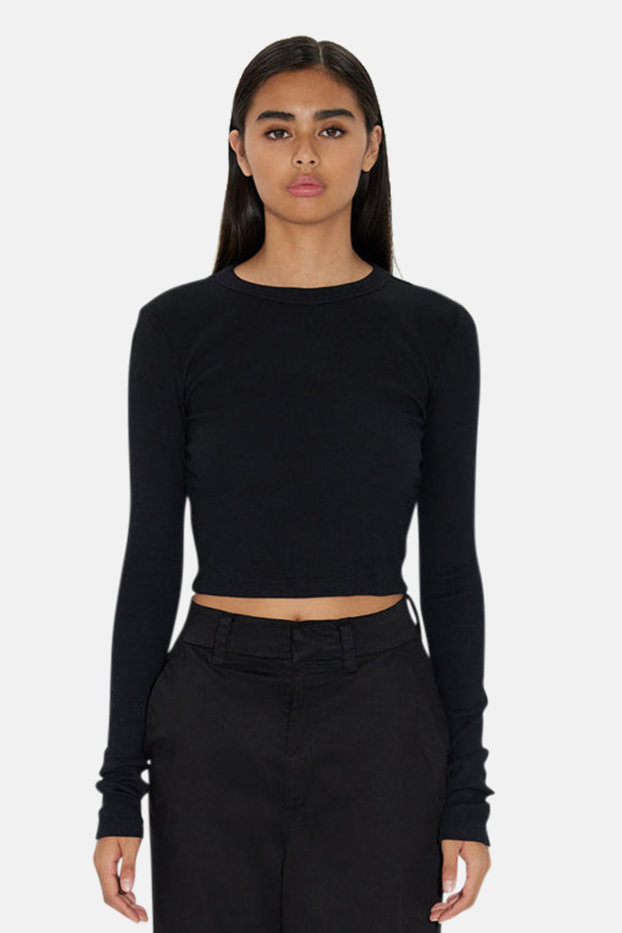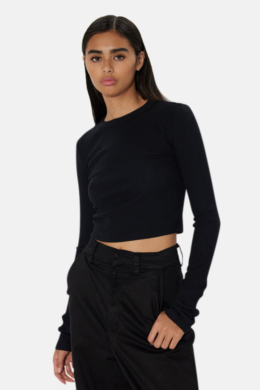 - Jet Black- 46% COTTON / 46% MODAL / 8% SPANDEX- Form-fitting- Cropped- Clean finish hems- Crew neckline- Super soft- Machine Wash Cold- Tumble Dry Low- Do Not Bleach- Style #: W214564