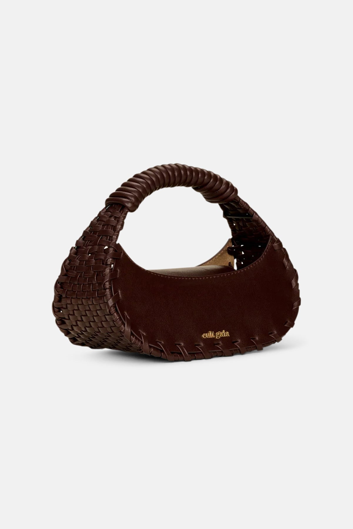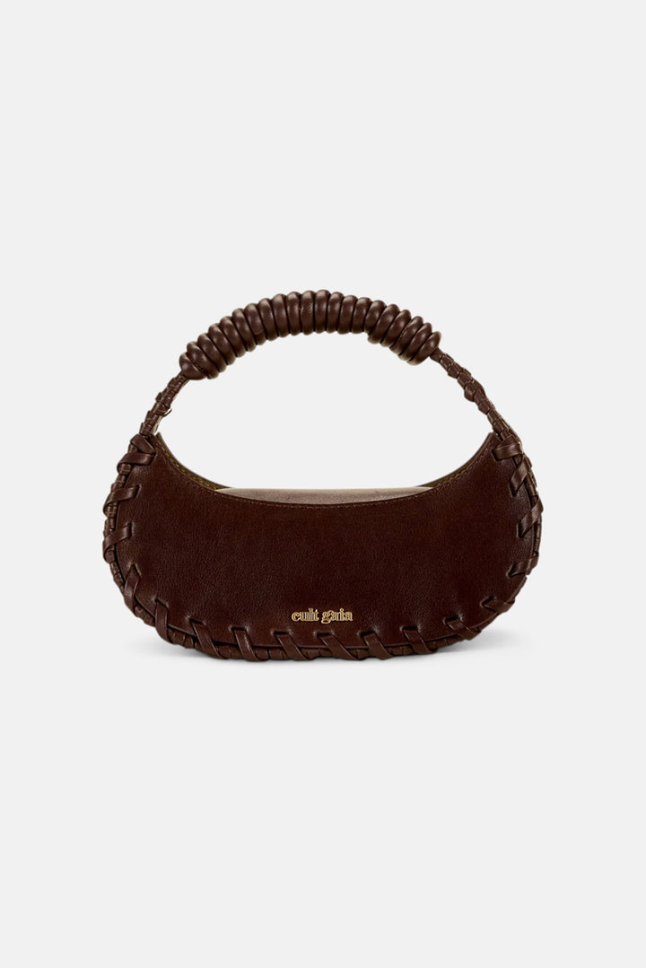 A structured mini bag with a spherical top handle design and signature Cult Gaia logo detail.