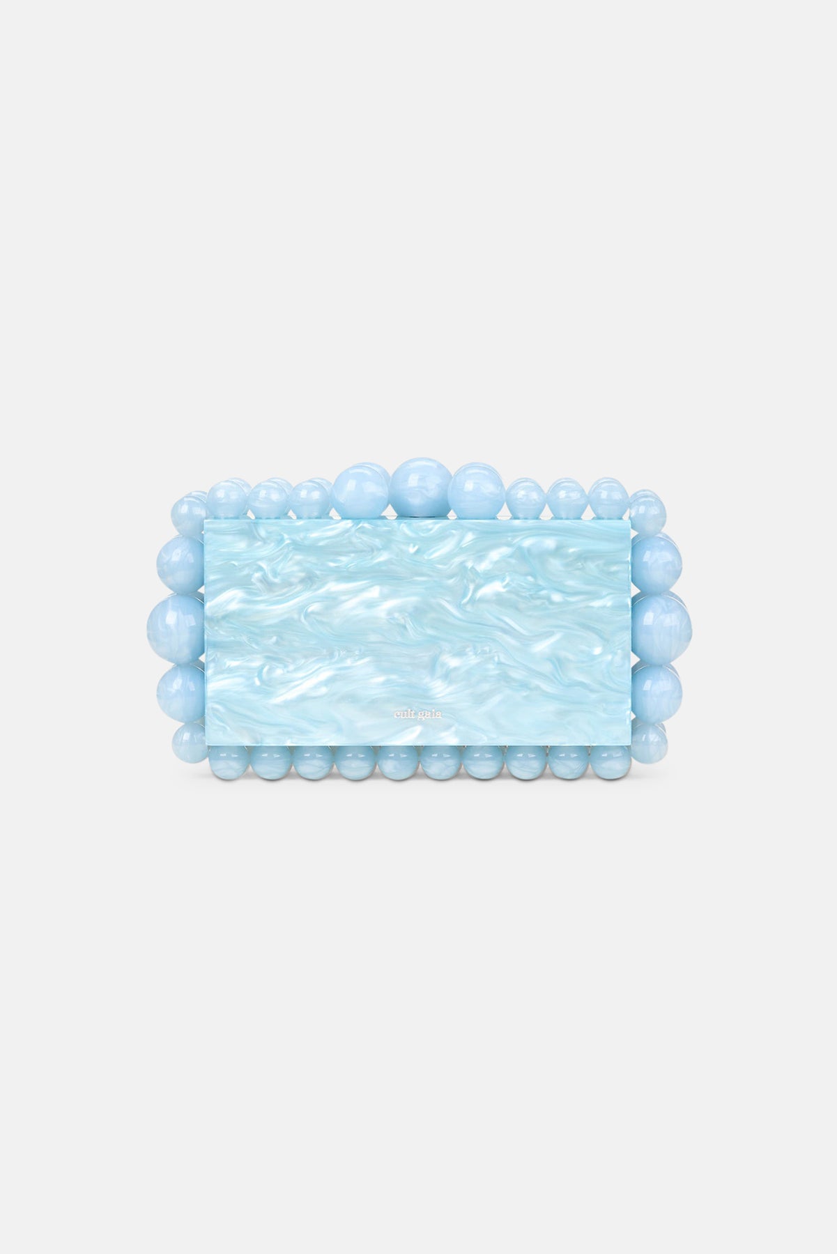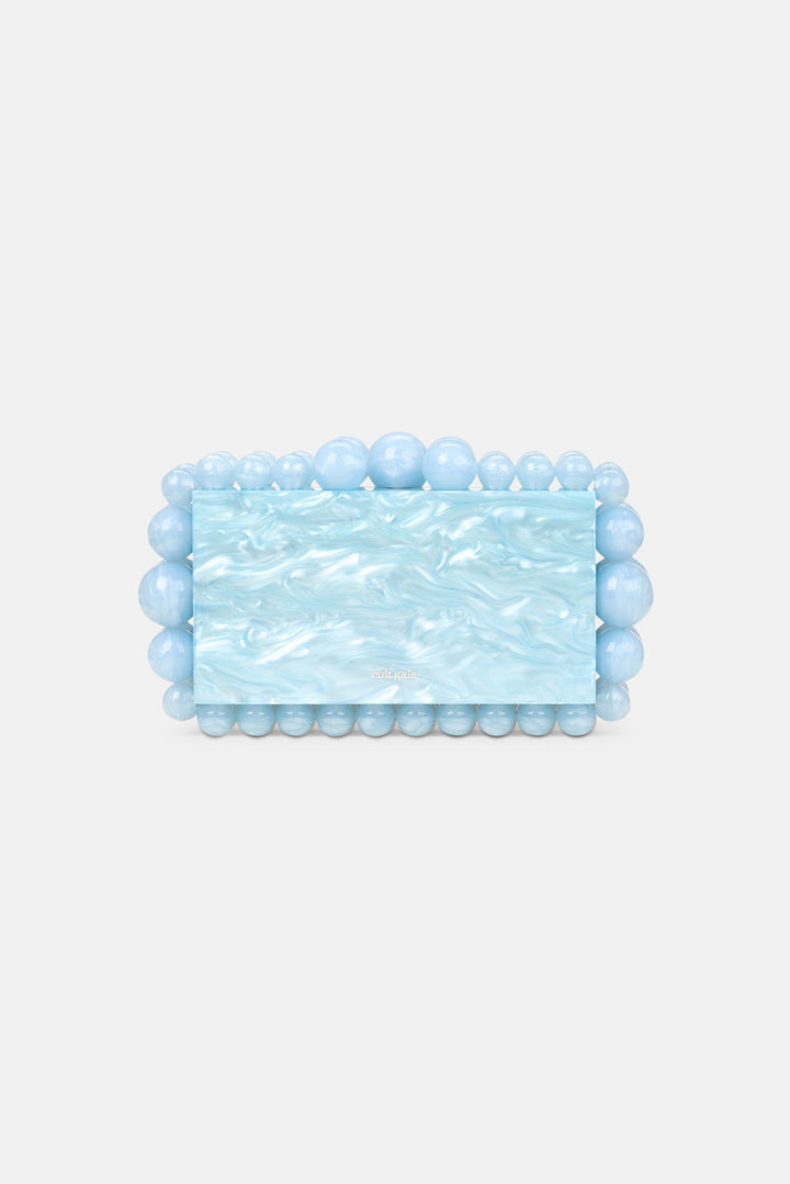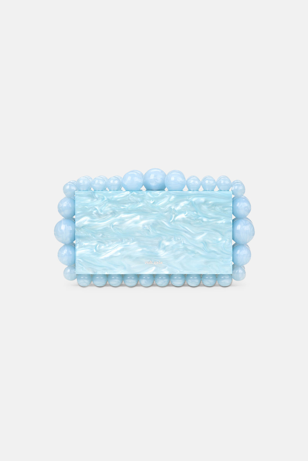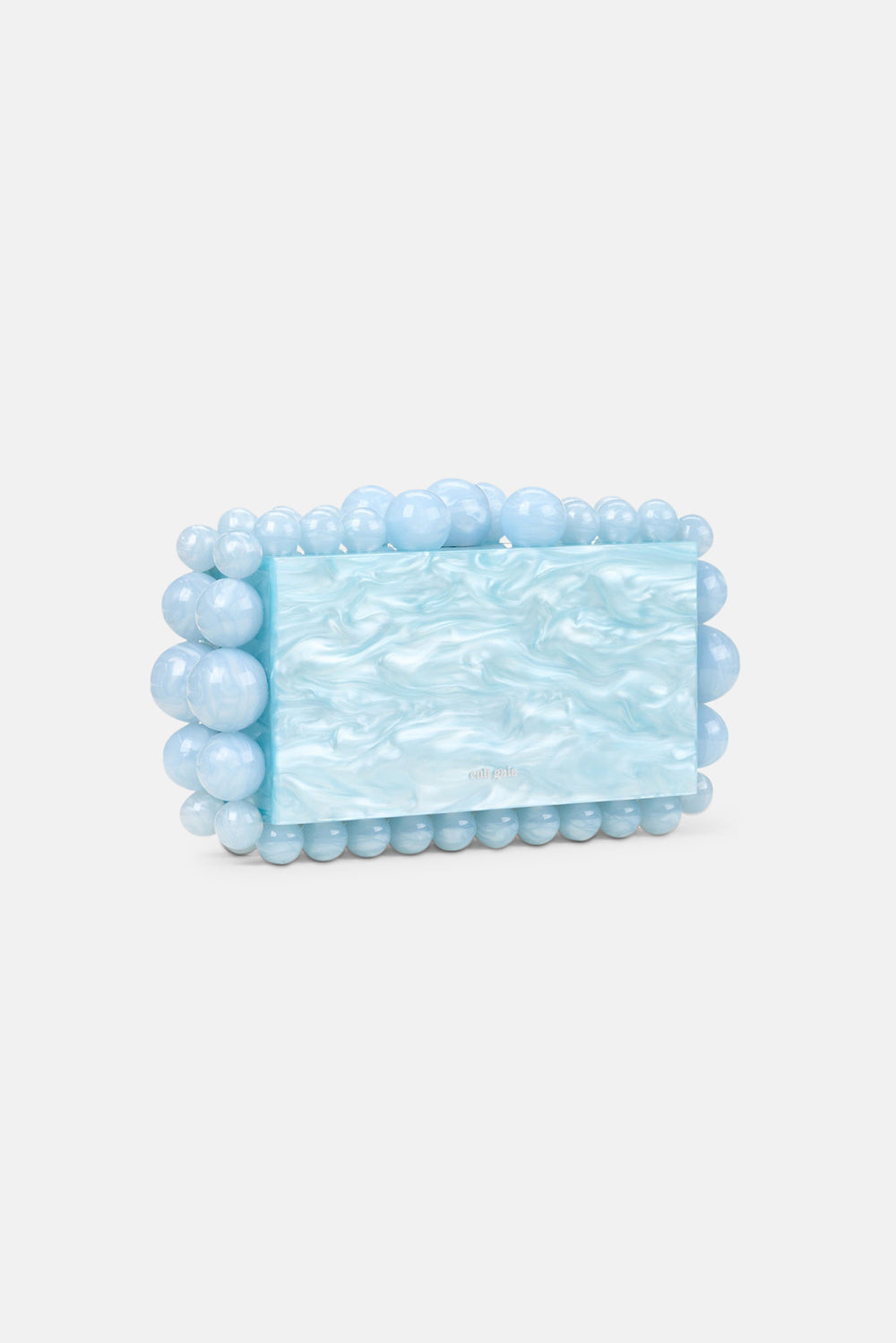 The signature marbled acrylic box-shaped clutch with coordinating acrylic beads surrounding the edges
