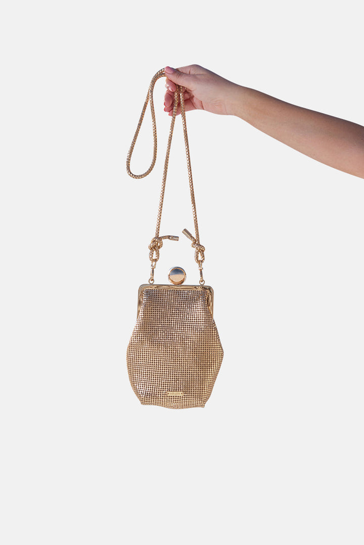 - The sparkling gold tones of the Maris Bag capture the attention