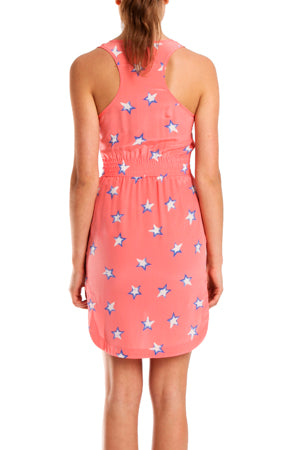 This playful star printed dress features a fun high low hemline and a gathered waist. Perfect for fun in the sun!