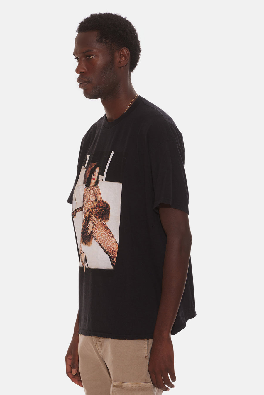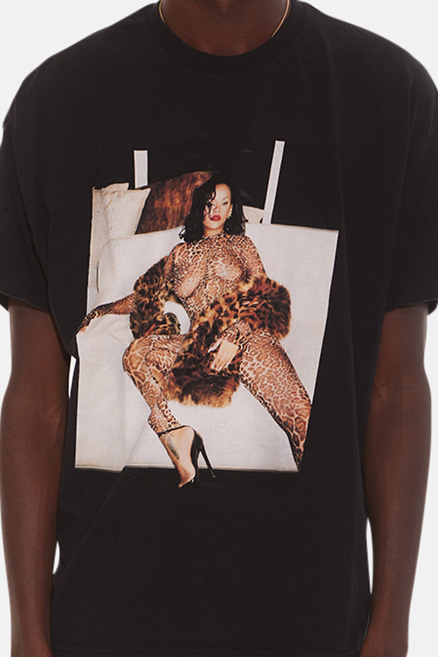 Distressed Rihanna Cheetah Tee Vintage Black