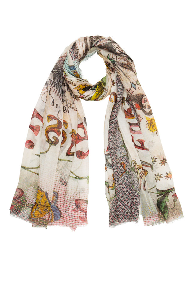Channel your inner goddess with this ornately printed scarf featuring a fresh spring palette and a celestial motif. A cashmere and modal blend provides light and airy comfort as you add this spring/summer statement to your look.