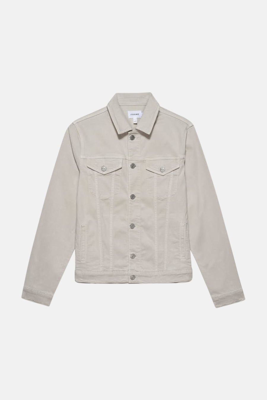 - A FRAME classic jacket designed with dual front pockets with buttoned flaps
