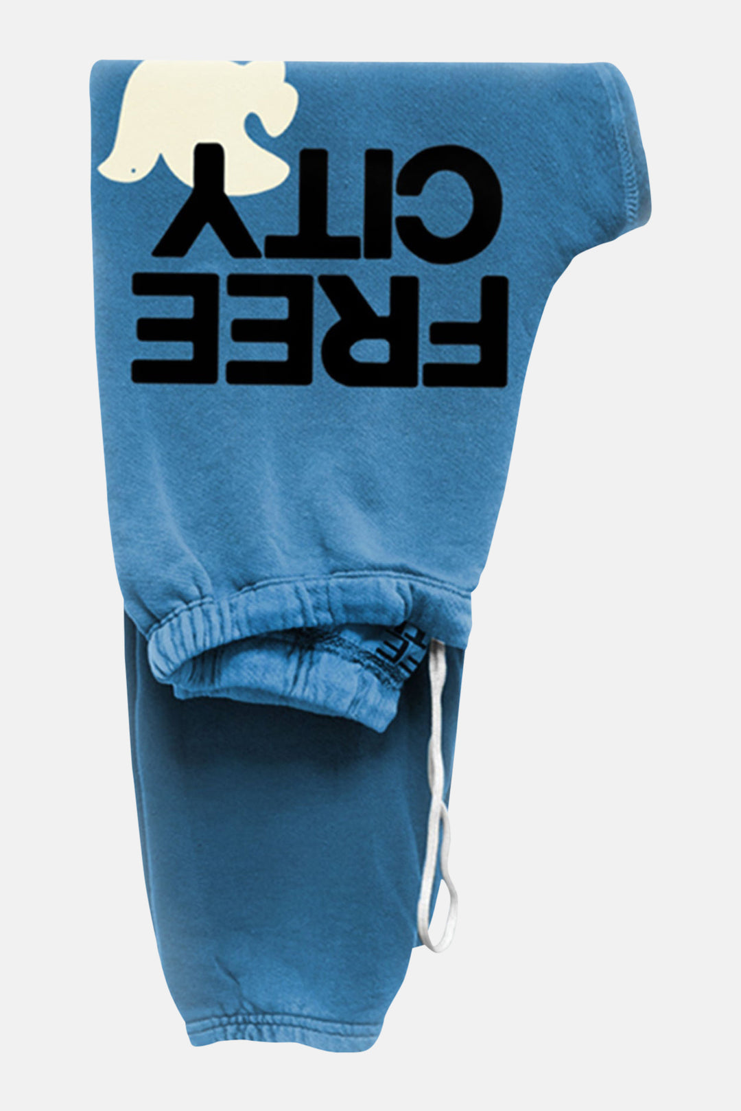 - Unisex sweatpants in blue sound with classic "FREECITYLARGE" print in black and cream "FREECITYDOVE," covered elastic waist and pull drawcord