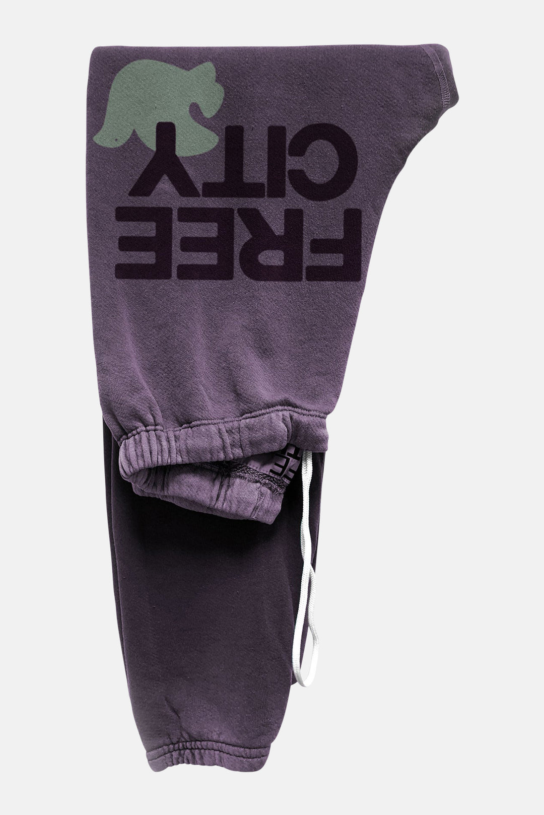 - Unisex SUPERFLUFF LUX OG sweatpant in plumshrooms with classic maroon “FREECITYLARGE” print and grey "FREECITYDOVE," covered elastic waist band with pull drawstring