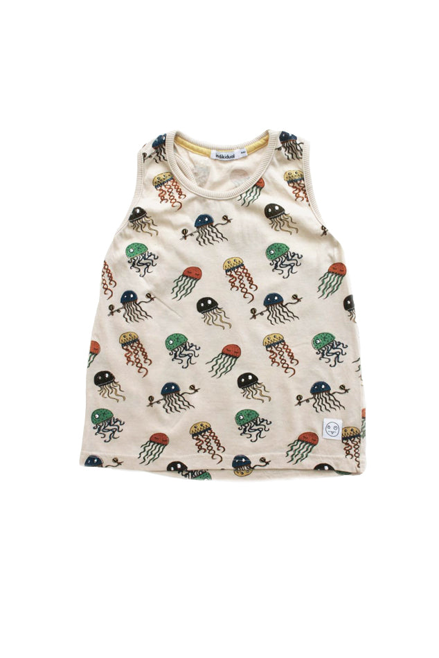 Jelly fish print tank top made in super soft 100% organic cotton. Complete the look with Indikidual's Salty Jellyfish Harem Sweatpant