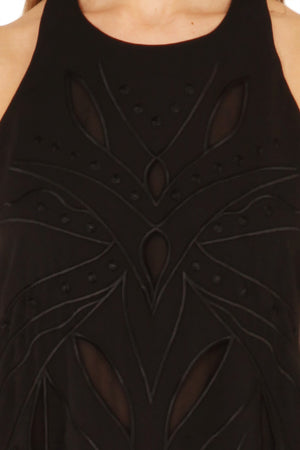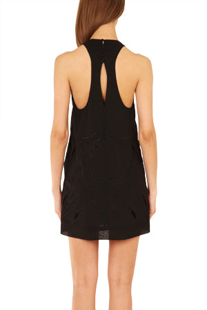 In a beautiful floral print, the Irene dress with placed cut outs will be sure to turn heads at any occasion.