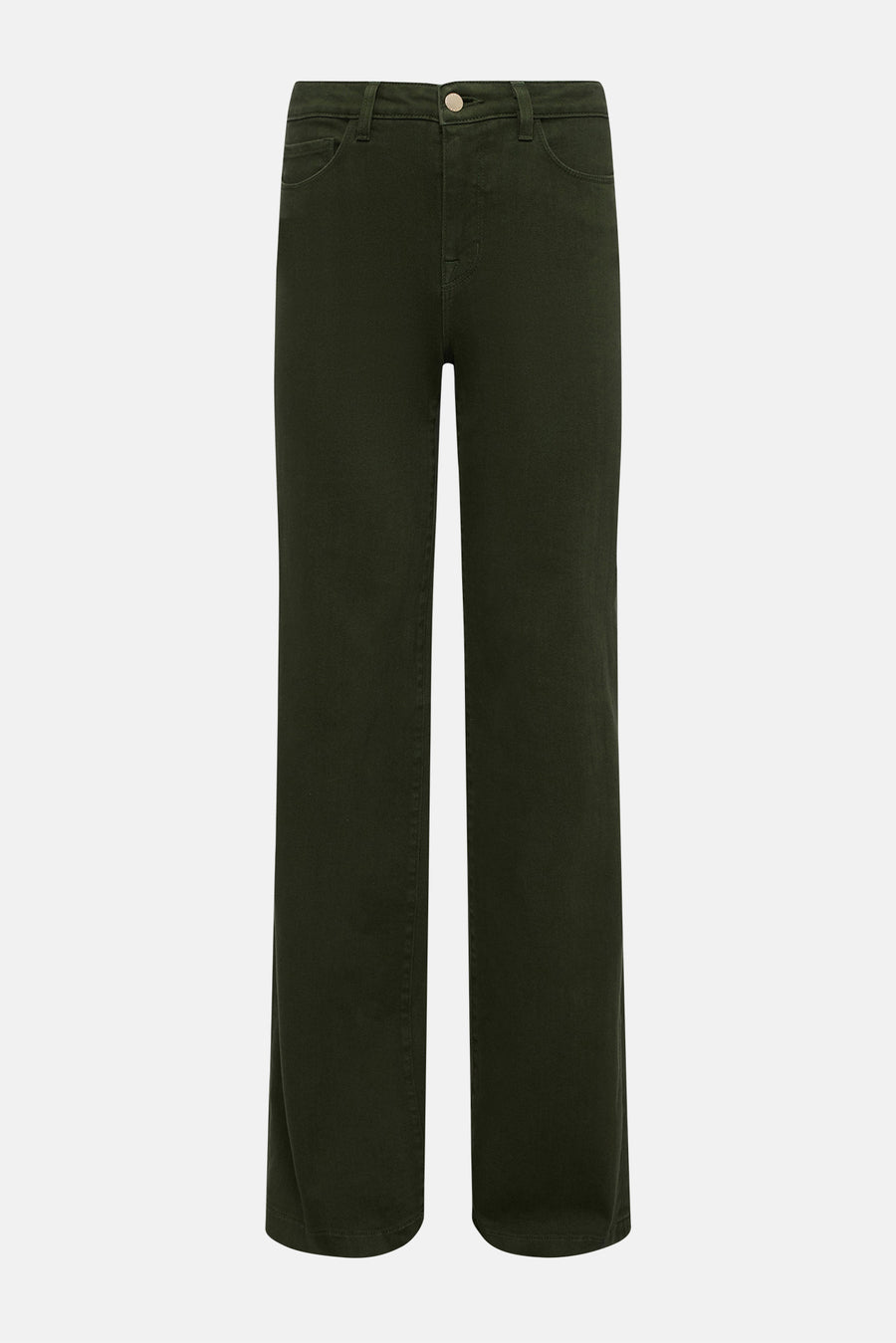 A beautifully proportioned wide-leg high-rise jeans in navy green premium stretch denim