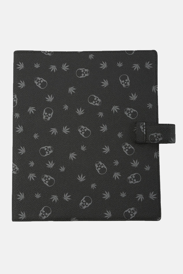 Signature Lucien Pellat-Finet skull and weed graphics on this storage folder. Four inside folder slots with a slip tab closure. Perfect for organizing all your important documents.