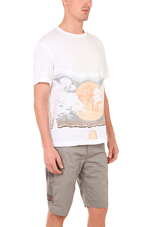 This unique tee features a hand stitched embroidery design on the front giving cool laid back vibe. Pair with simple, solid colored bottoms to let the shirt's pattern speak for itself.