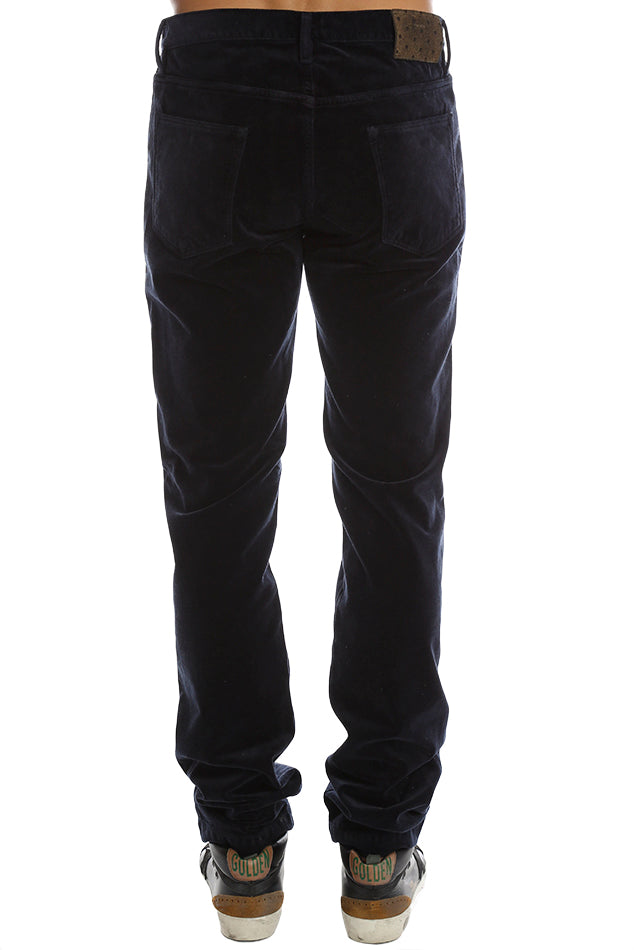 A rich colored velvet 5 pocket pant, great for cold weather while dressing up a daytime outfit. Loose fit around the calves makes for your classic straight leg man's man fit.