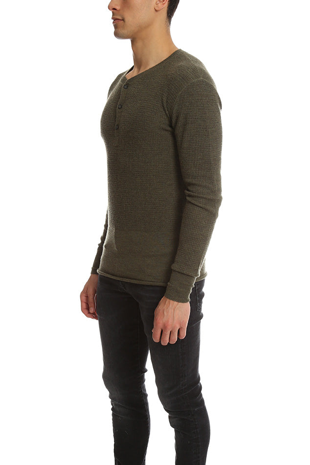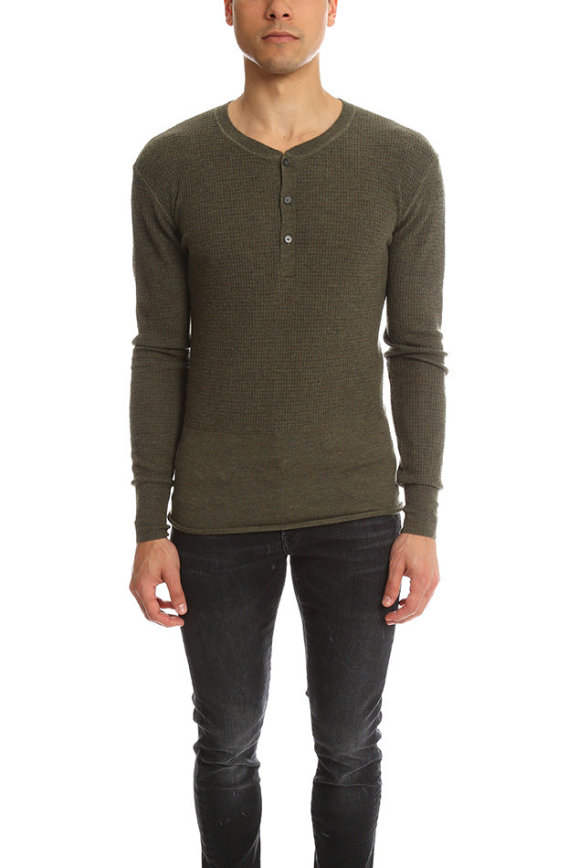 Military Green 3.1 Phillip Lim Incomplete Waffle Henley LS