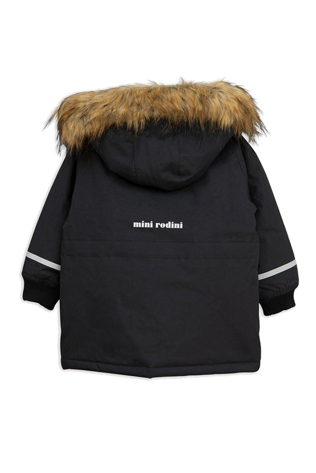 The K2 Parka is Mini Rodini's most advanced and durable outerwear piece to date, and makes the perfect jacket for your little one to rock all winter long - made to withstand nearly any weather condition. This style is highly breathable and water resistant, with a heavy shell finished with BIONIC-FINISH ECO coating. Finishing touches like the removable hood with faux fur lining, cozy rib knit cuffs, and reflective stripes at the sleeves add utility and practicality.