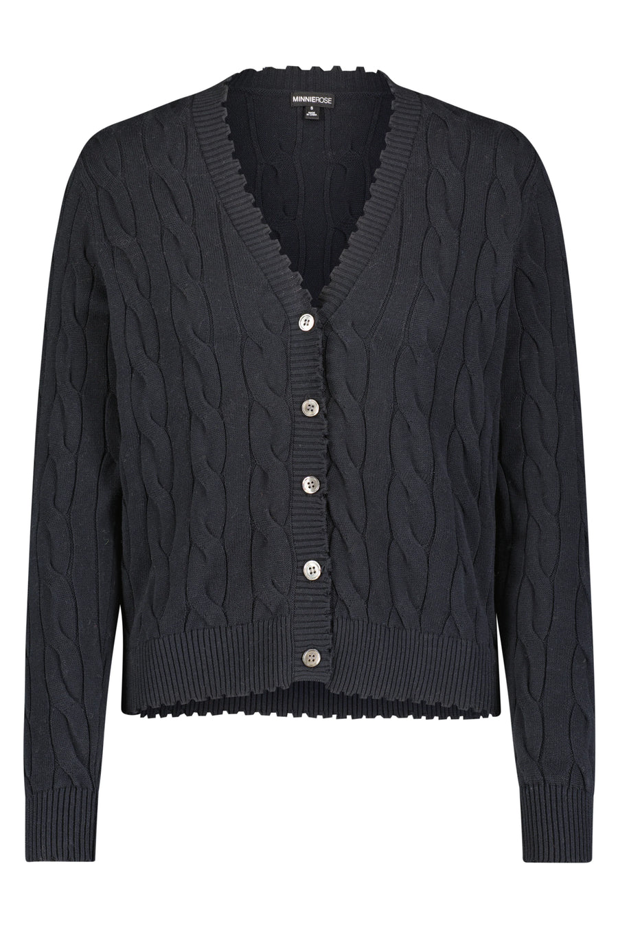 Rounding out the group in the cotton cables is the cardigan. The BFF to the cable crew and v neck, layer it over everything and anything; or absolutely nothing at all.