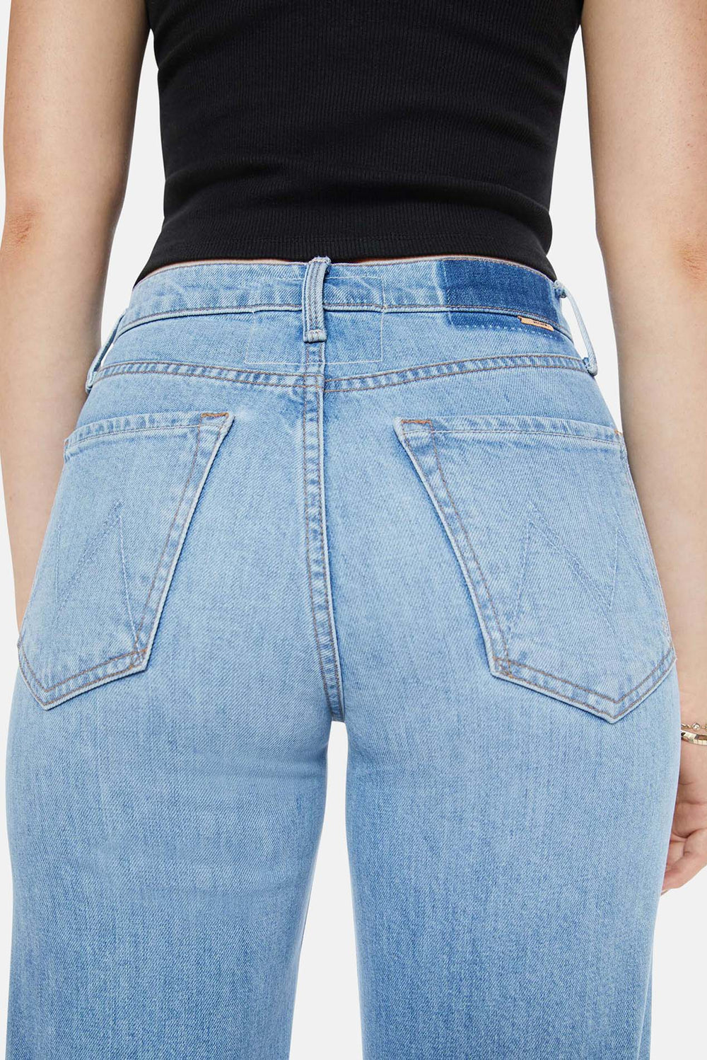 This iconic high-waisted wide leg has a button fly, 31-inch inseam and clean hem. Made from semi-rigid SUPERIOR denim, Puzzled is light blue with whiskering and fading at the knees.