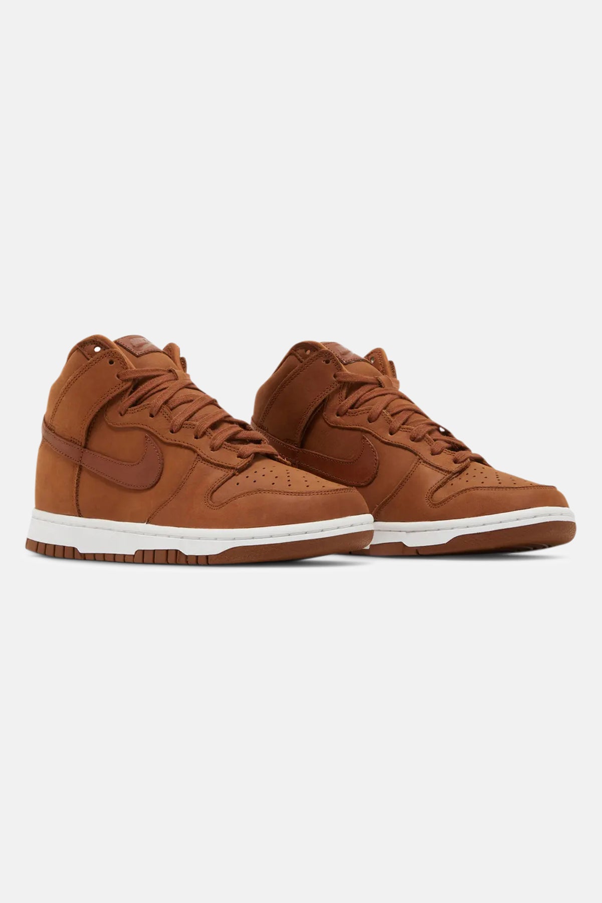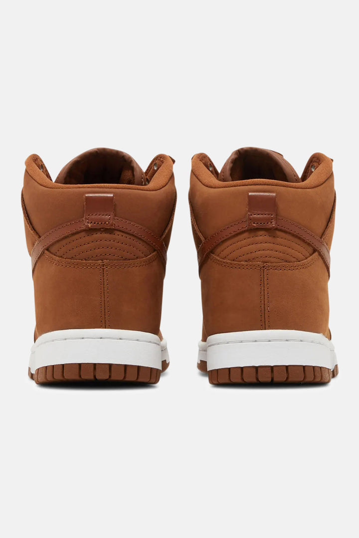The Nike Women’s Dunk High Premium ‘Pecan’ updates the retro silhouette with an elevated build, highlighted by a monochrome leather upper with a subtly weathered aesthetic. Heritage details maintain the shoe’s vintage basketball DNA, including a perforated toe box and a high-cut padded collar. Nike branding is embossed on a stitched leather tongue tag. Anchoring the sneaker is a crisp white midsole, reinforced underfoot by a Pecan brown rubber outsole.
