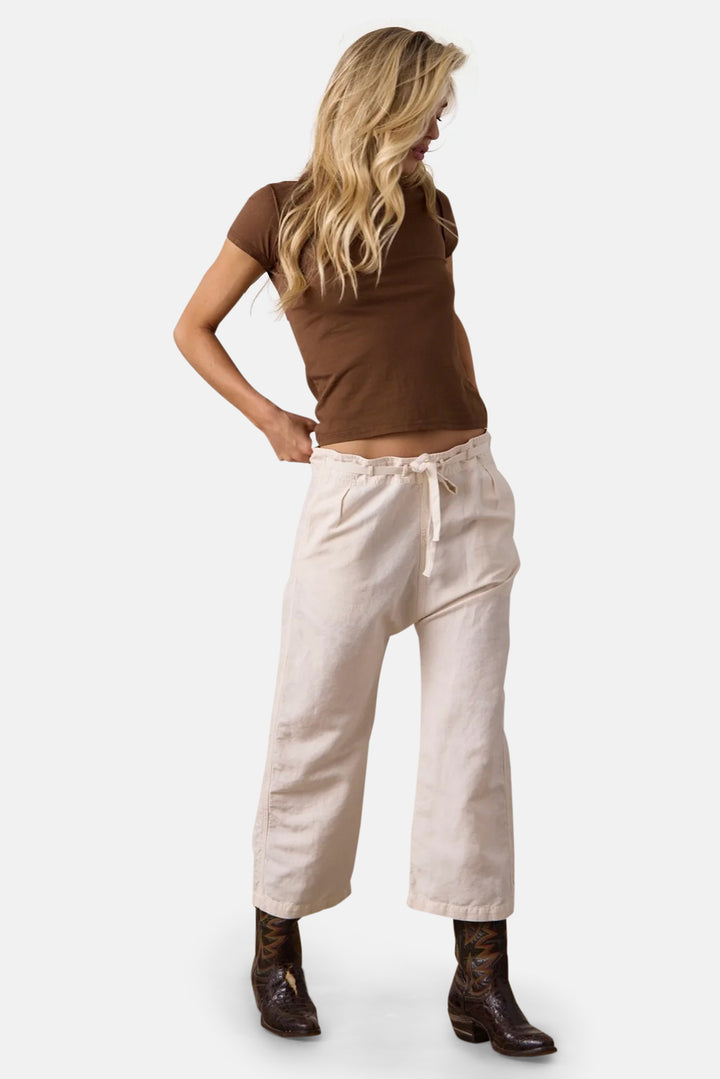 Your go-to for laid-back days. This mid-rise tie pant cut from ultra soft linen cotton with length that hits just right. Wear it slouchy, cinched, or styled your own way-it's all about effortless ease and whatever mood you're in.