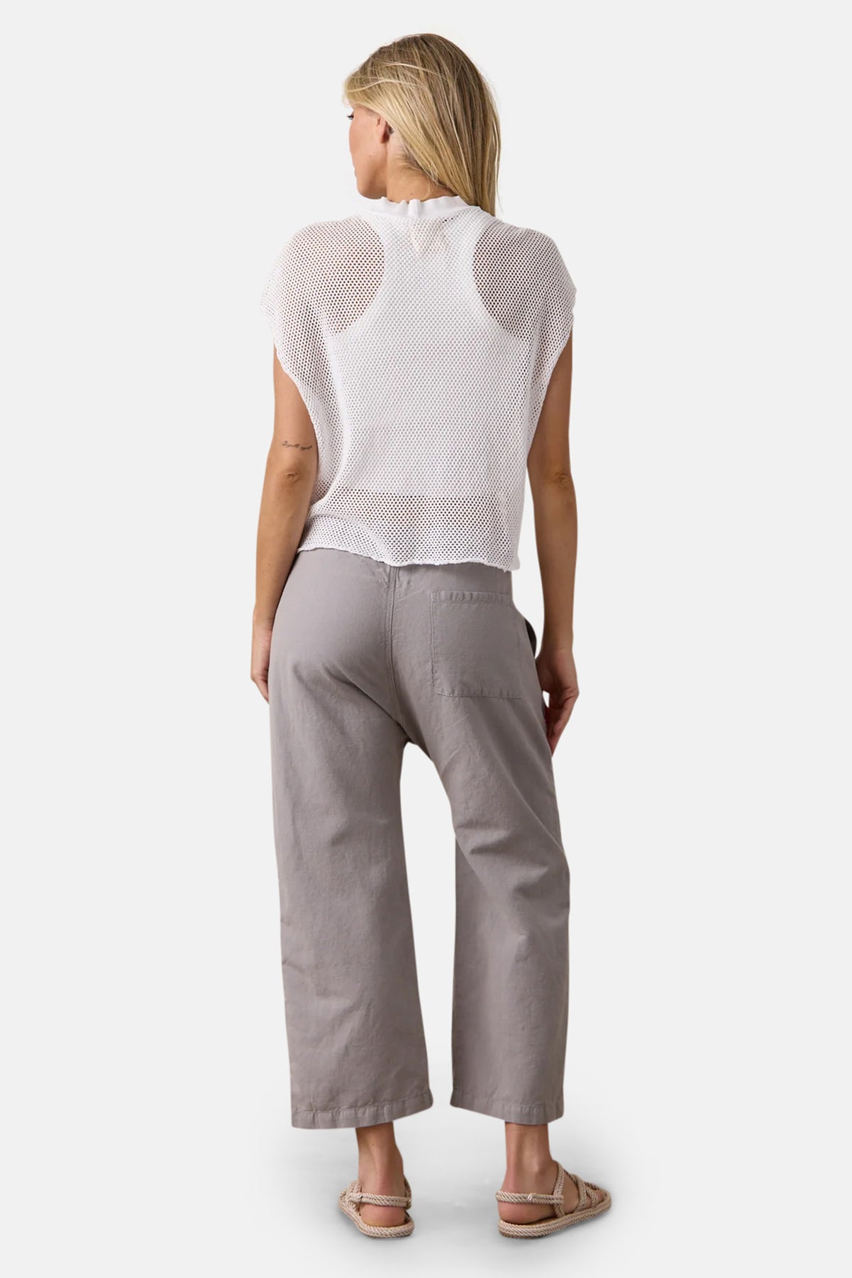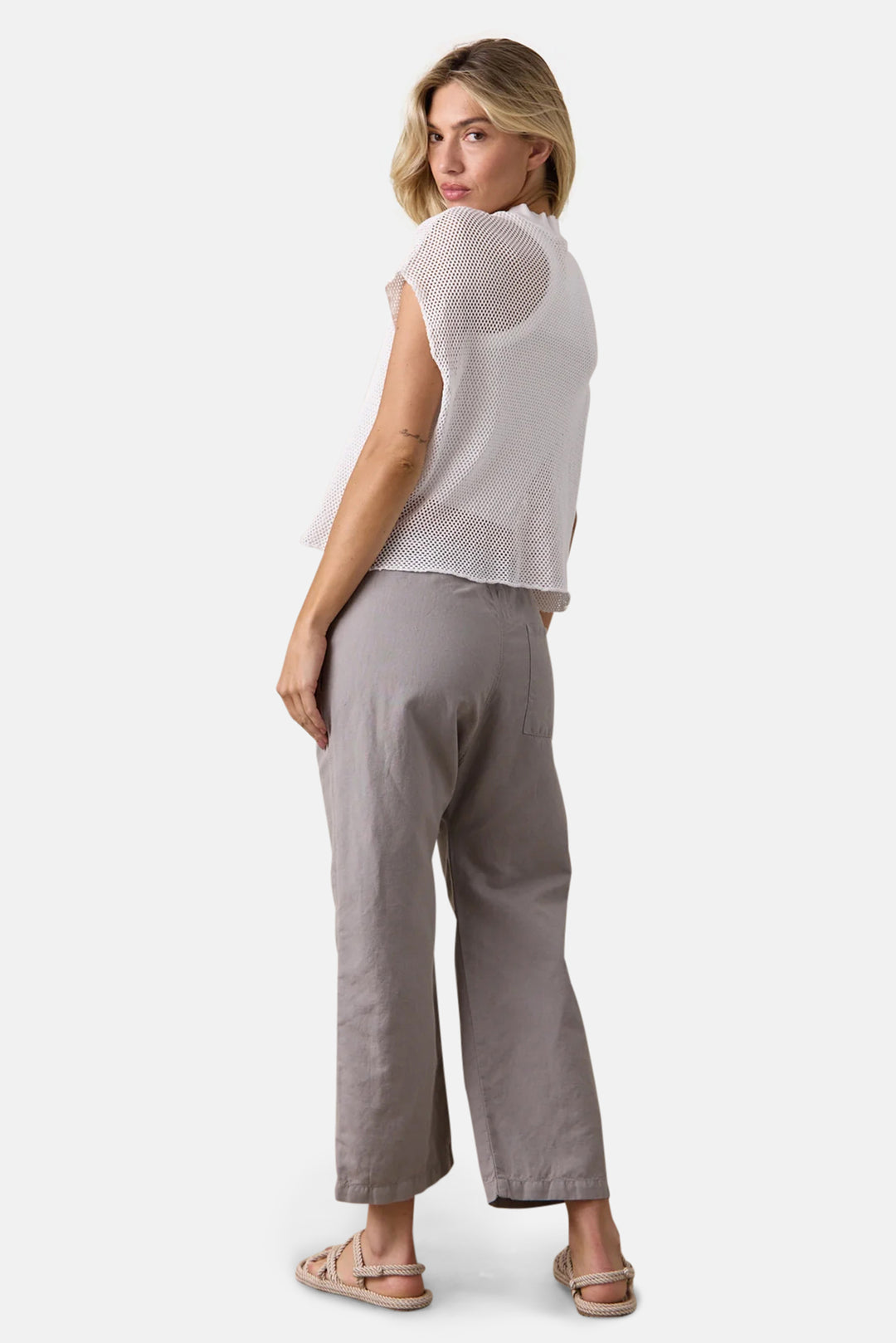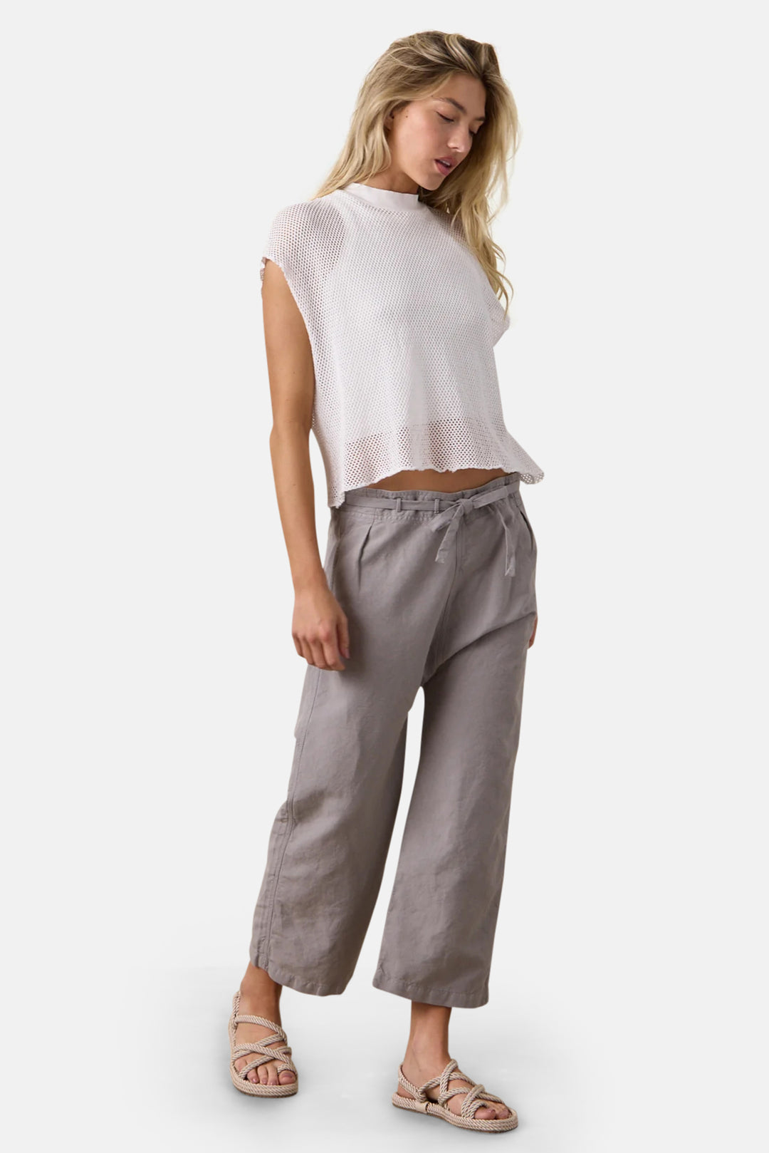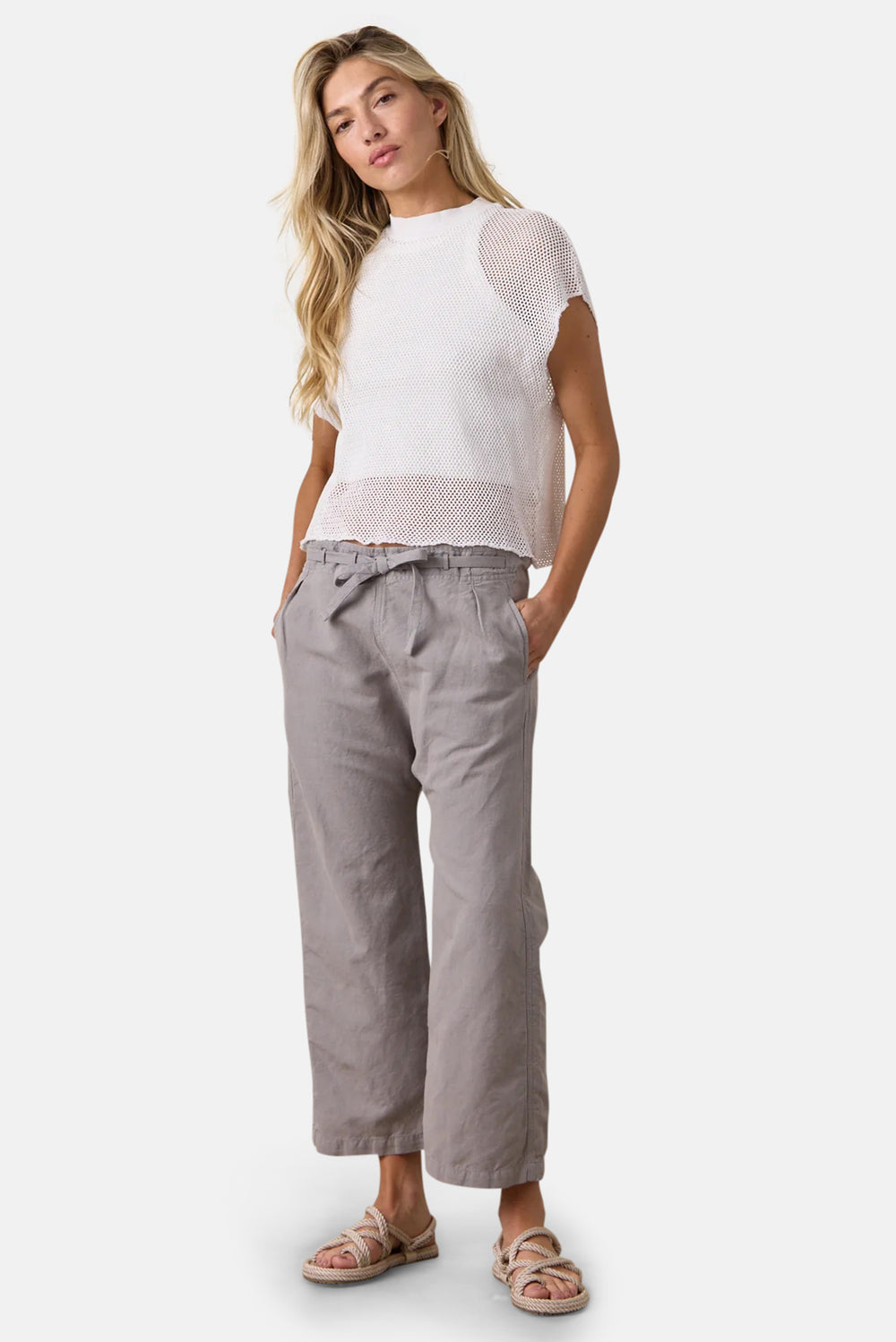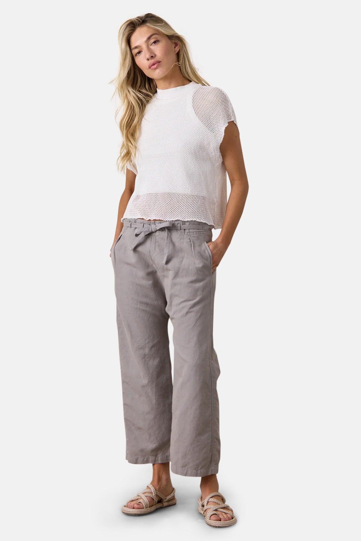 Your go-to for laid-back days.  This mid-rise tie pant cut from ultra soft linen cotton with length that hits just right.  Wear it slouchy, cinched, or styled your own way-it's all about effortless ease and whatever mood you're in.