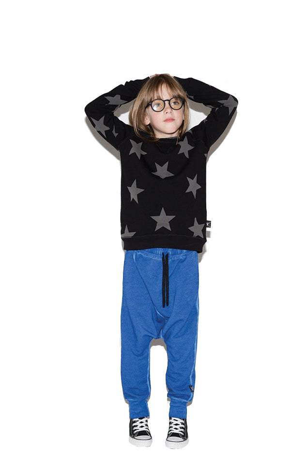 The diagonal seam on this drop-crotch pant lends to its relaxed baggy silhouette. This unisex style is easy breezy for all day fun and comfort. Drawstring elastic waist and slant pockets.