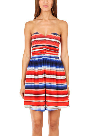 Fun & flirty this strapless Baja print inspired dress by Parker undeniably hugs in just the right places. With a rich color scheme and sweetheart neckline, it is a must have for an easy outfit-of-the-day solution.