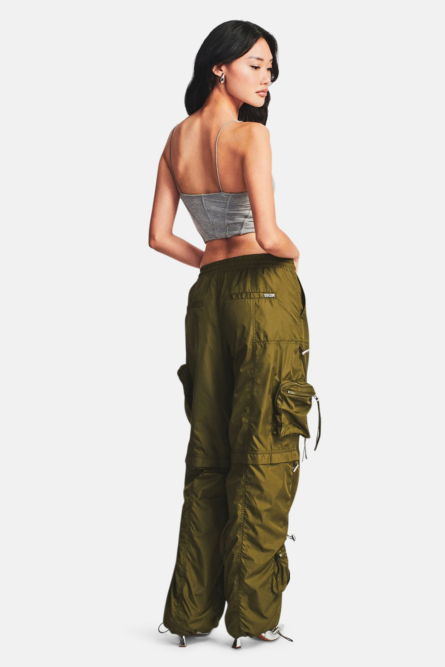 - Baggy silhouette track pants with 3D side panel pockets, and metal and zipper anglet embellishments