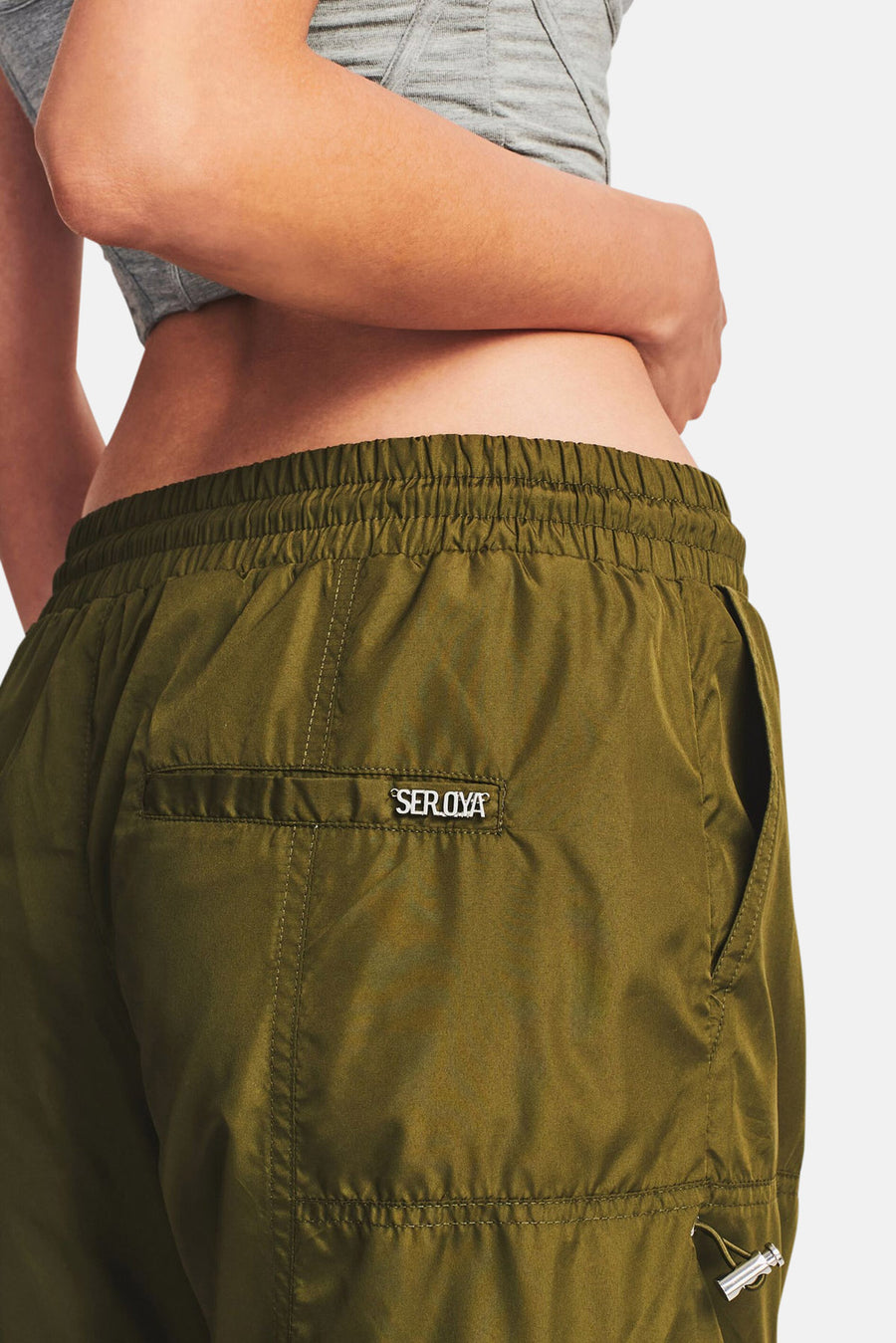 - Double back welt pockets, and an adjustable ruched gathered drawstring hem