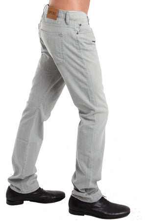 Introducing the Spurr by Simon Spurr Stretch 3 Year Wash denim. This rigid denim by Simon Spurr features a light grey wash, which gives off a worn, but clean appearance as if you have perfectly washed these jeans for 3 years.