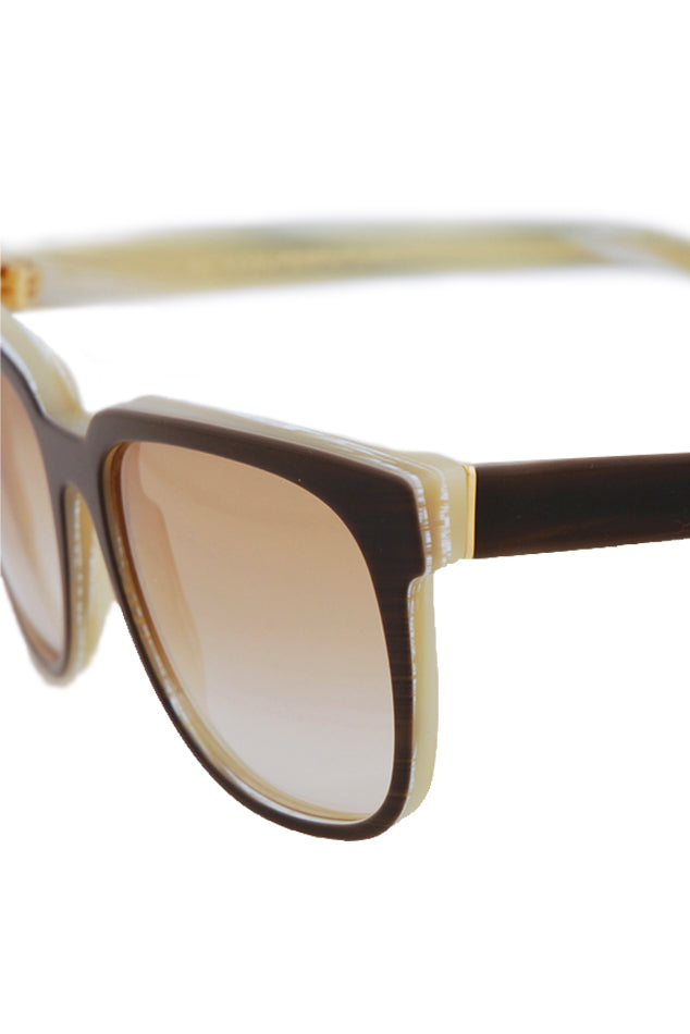 Super's beloved Francis model, with its metal arms, is the perfect base for the leopard print, giving it a tasteful matte finish that pops nicely against the glossy havana acetate. Lenses are classic―in a tobacco brown Carl Zeiss, set off with delicate gold decor on the front and sides.